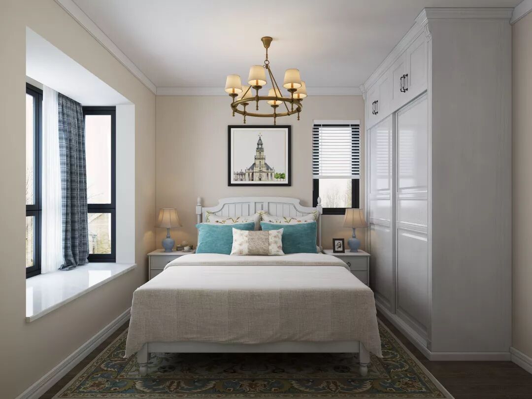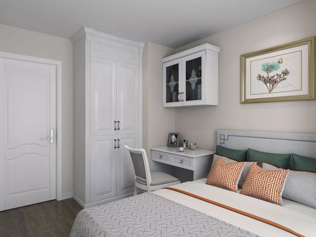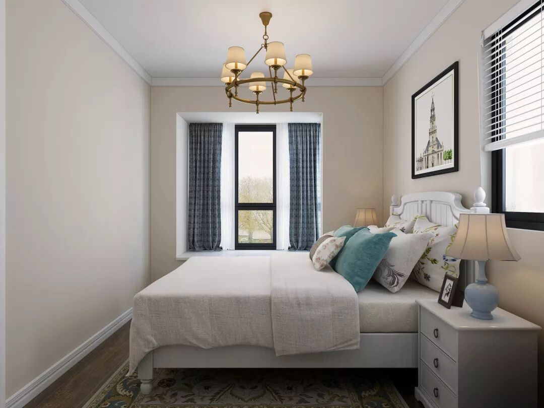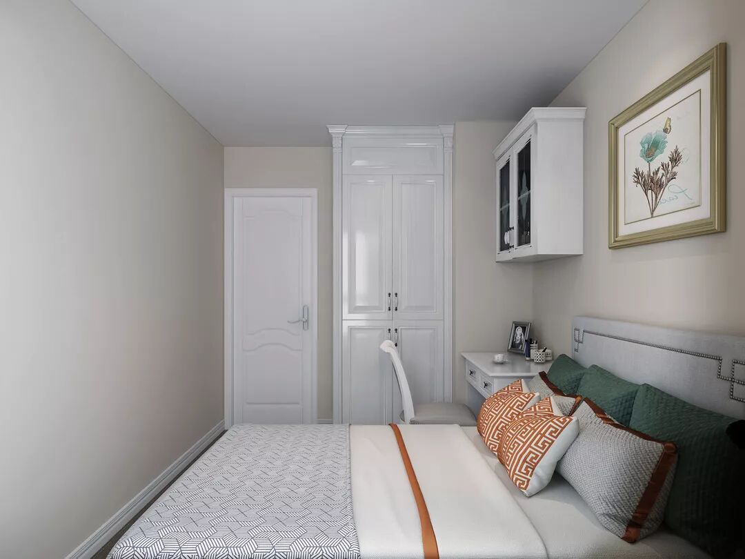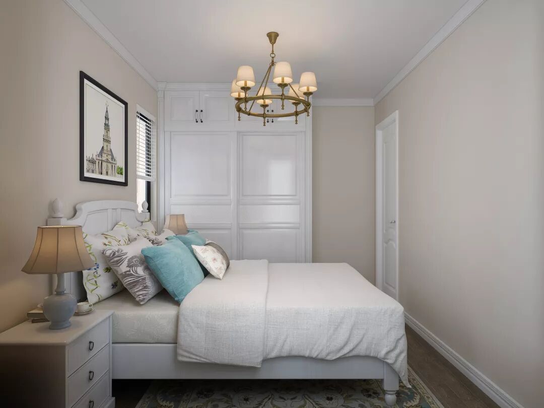 即使是一个简单的次卧,也能展现出高雅和不凡。次卧一简洁的欧式吊灯搭配洁白的衣柜,整个空间尊贵并且还很轻灵。