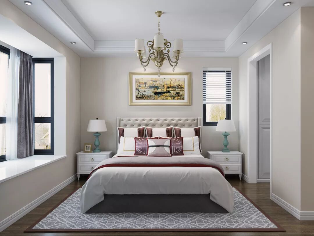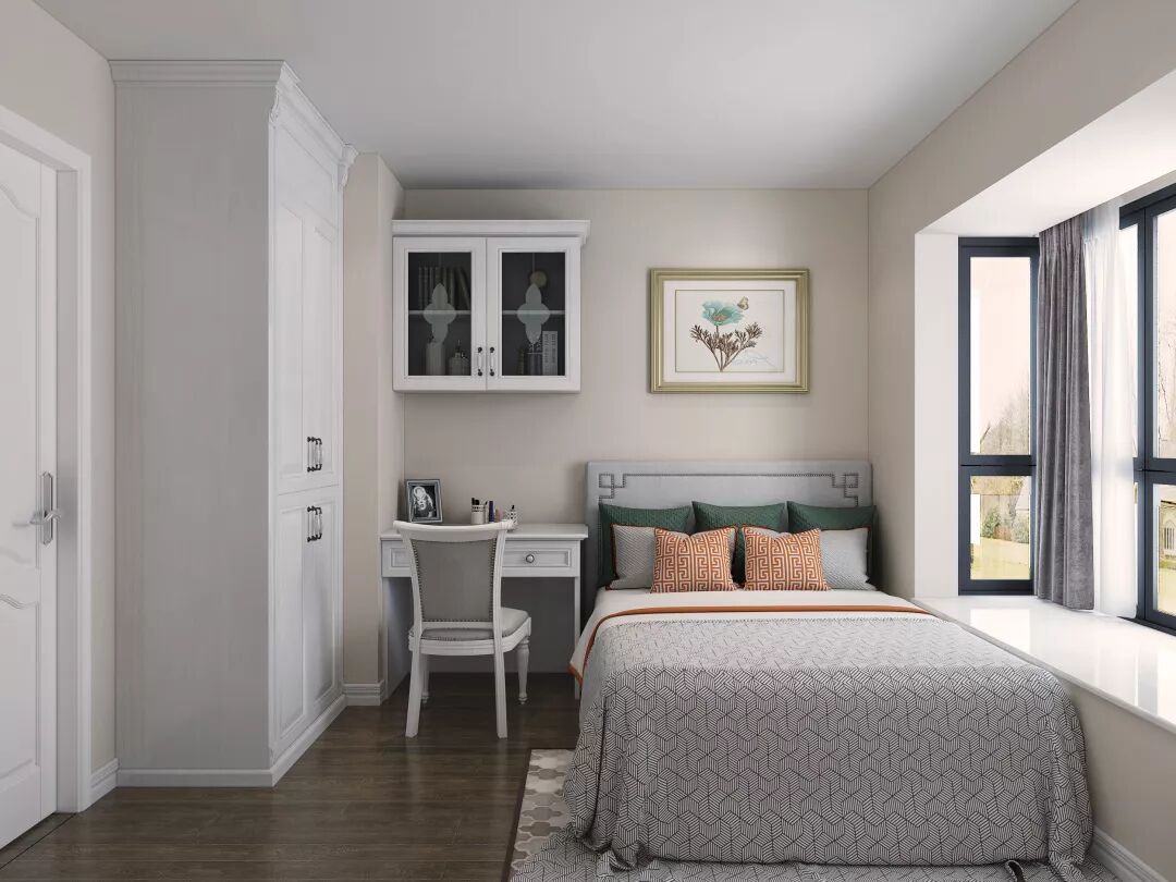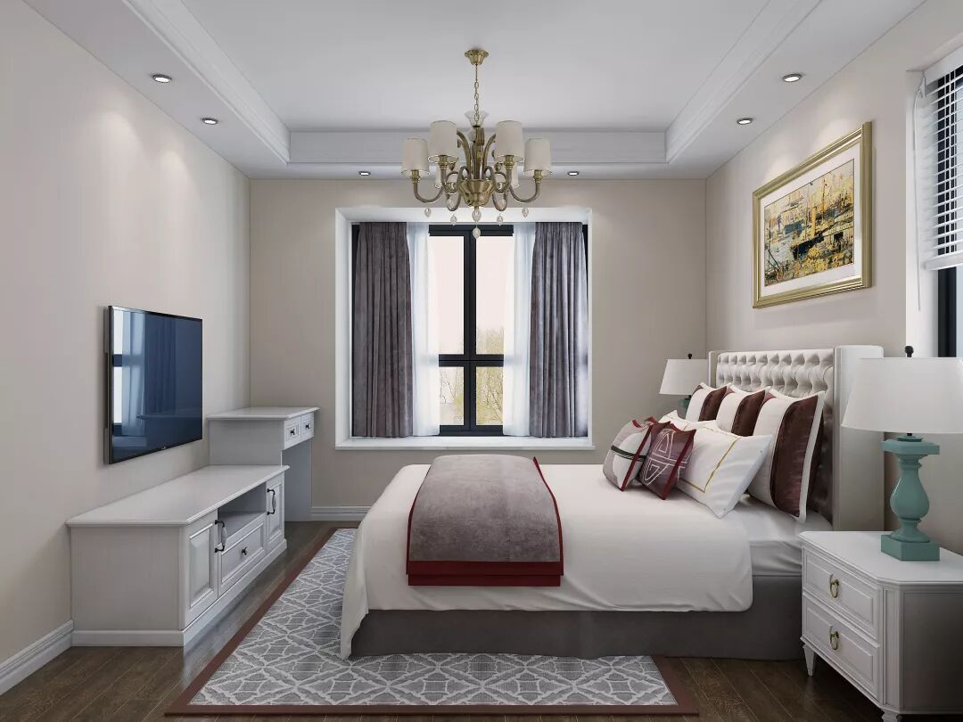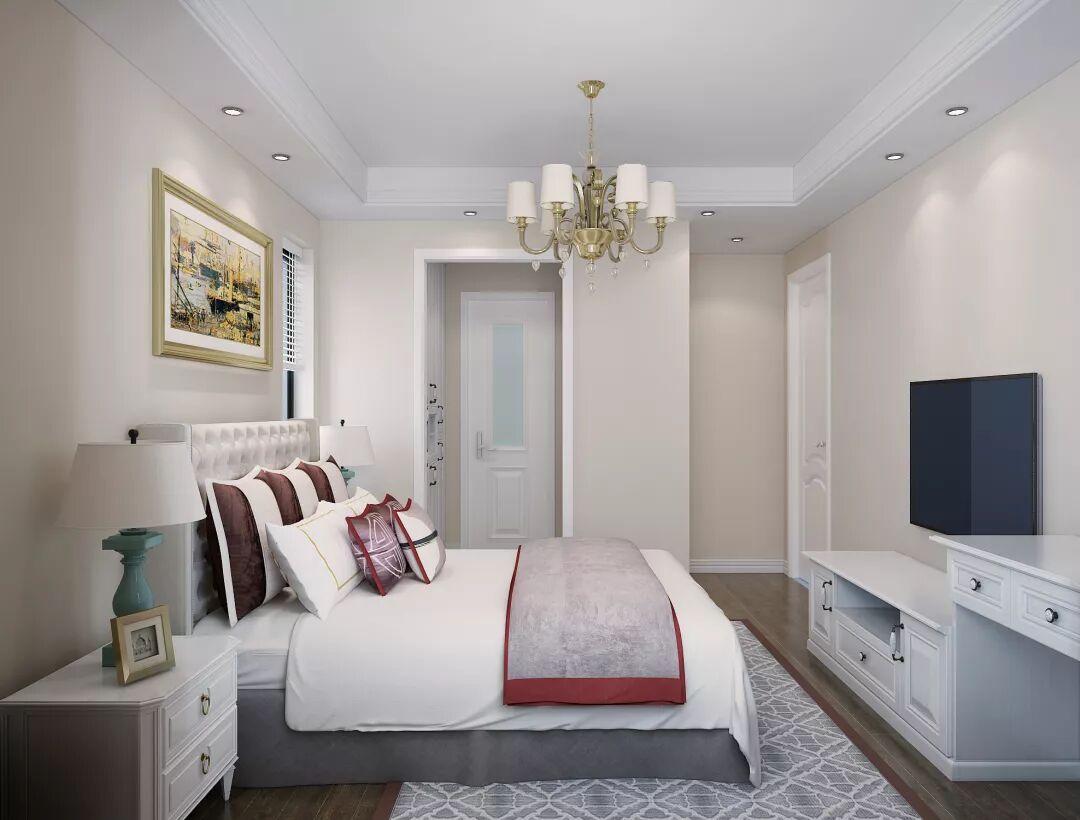 即使是一个简单的次卧,也能展现出高雅和不凡。次卧一简洁的欧式吊灯搭配洁白的衣柜,整个空间尊贵并且还很轻灵。