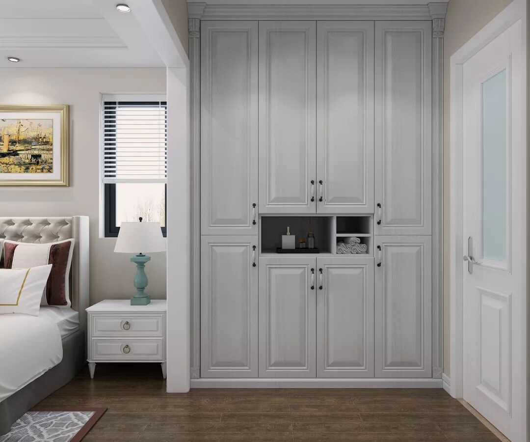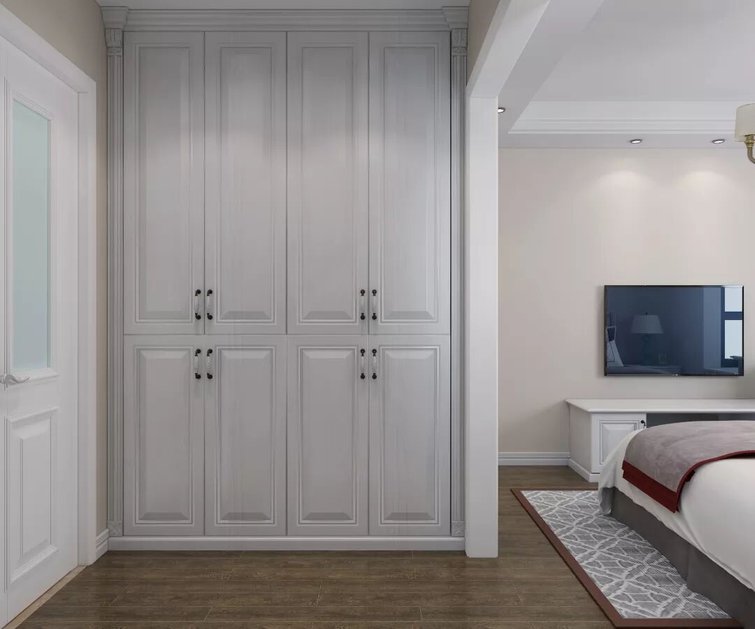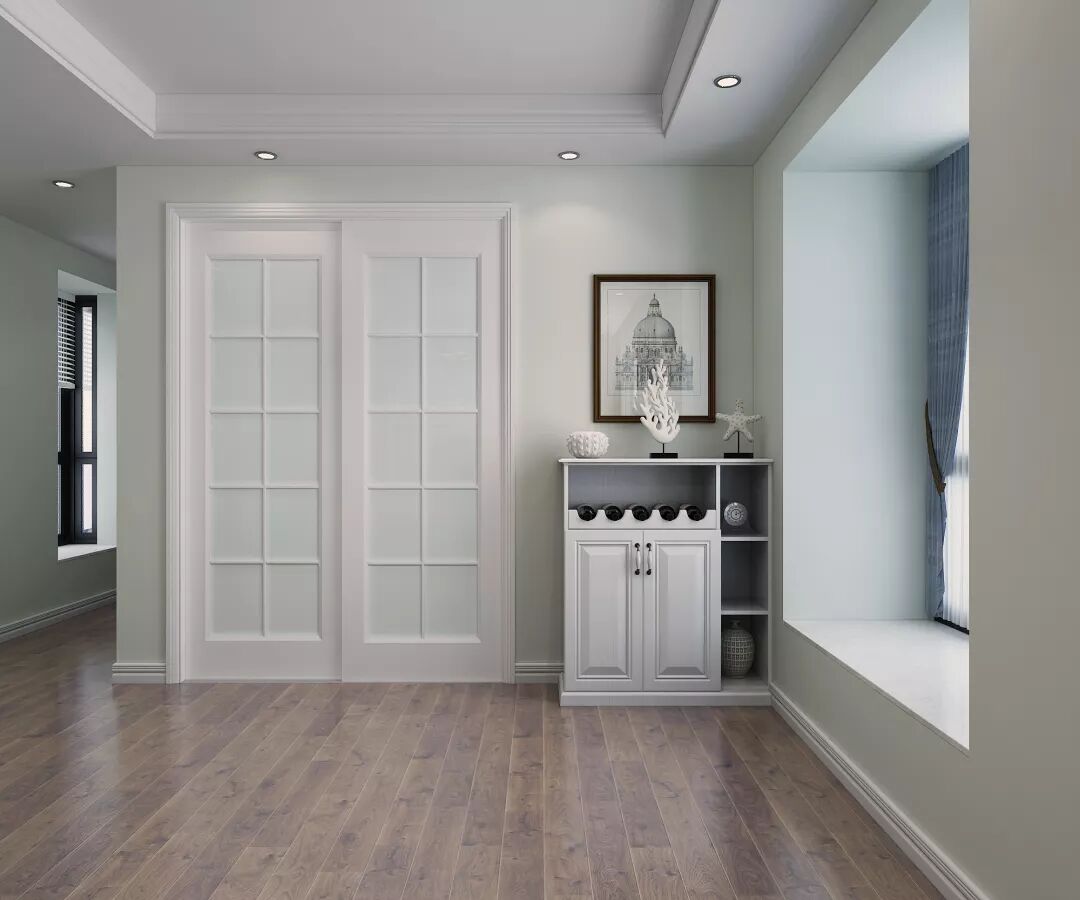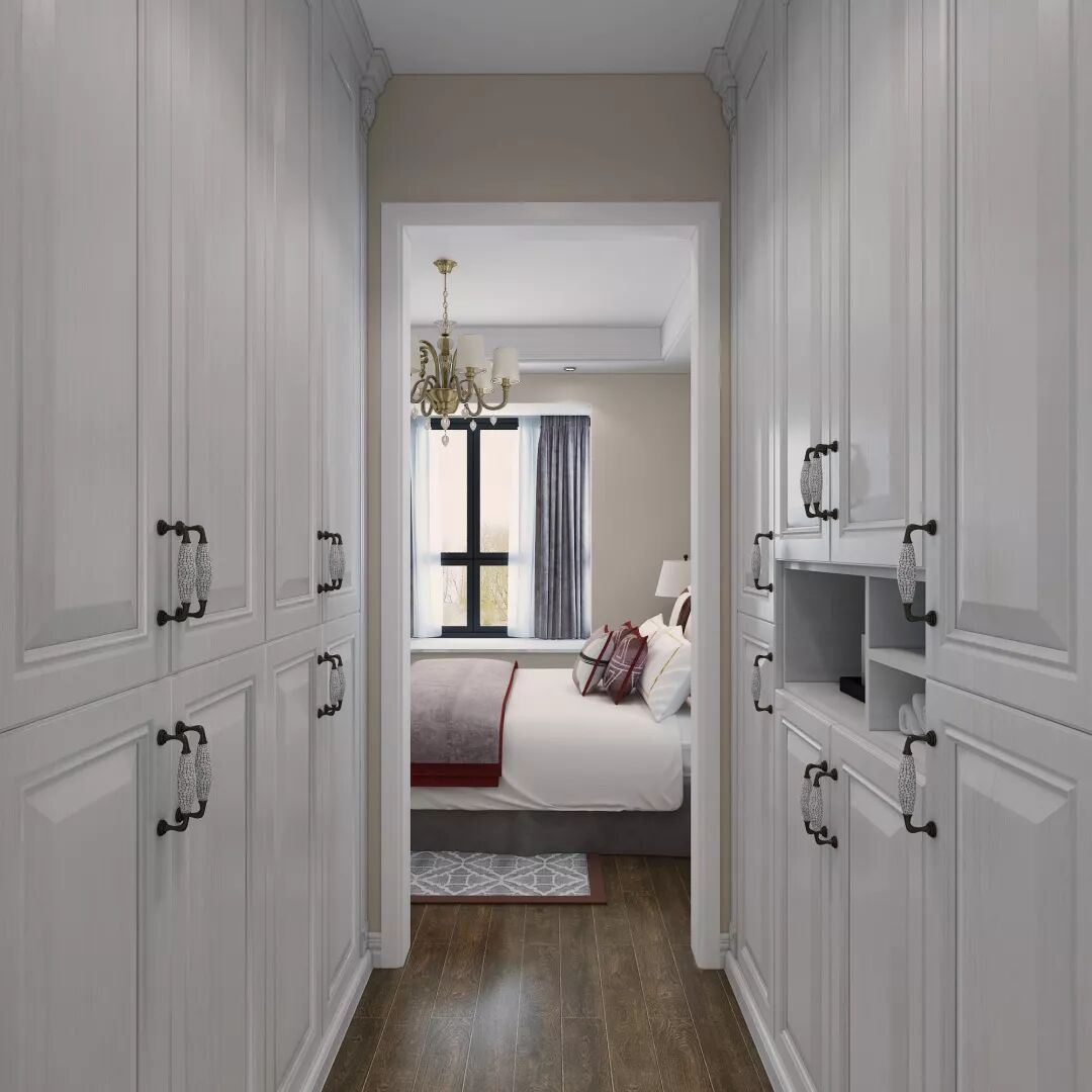 现代人都追求简约典雅的艺术品味,这个主卧空间中诗意的画面,引人遐想。衣柜嵌入空间,相对而立,这样让存储的空间更加充足,而且还具有一定的隐蔽性。