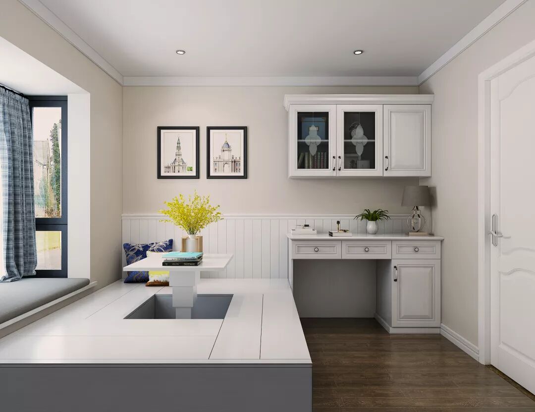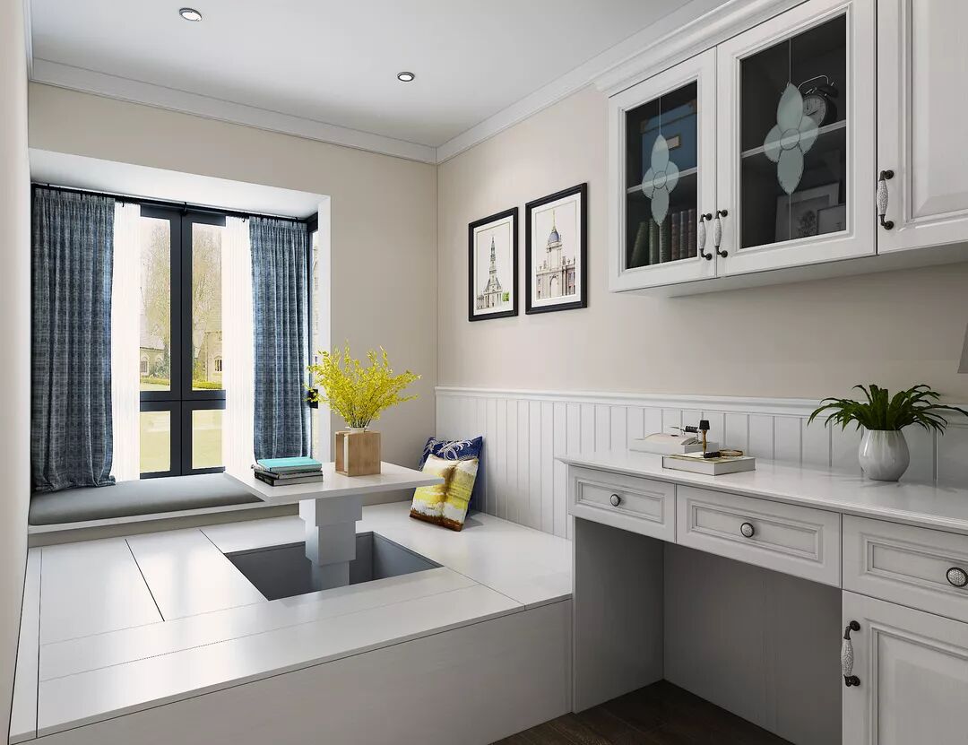 榻榻米是个万能的设计,在拥有柜台和吊柜的同时,榻榻米还可多用。如若在这样的开敞的空间里闲坐,应该会拥有非常惬意的时光吧。