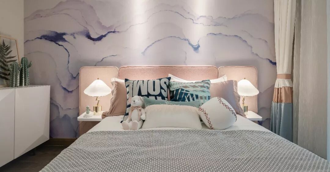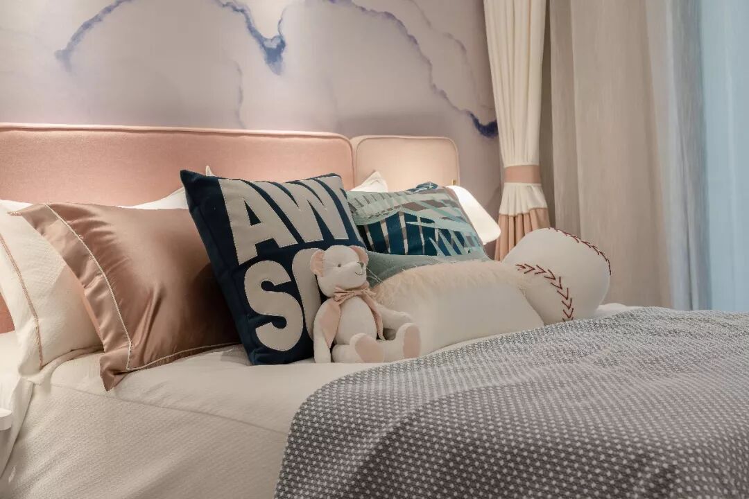 童话一般淡雅的绿,在空间里随意点缀,涂抹出一派绿野仙踪的意境。淡粉色的床头,写意着几缕淡蓝的幕墙,轻松勾勒出一个小女生的公主之梦。空间的装饰充满趣致,丰富着孩子无忧无虑的童年时光。