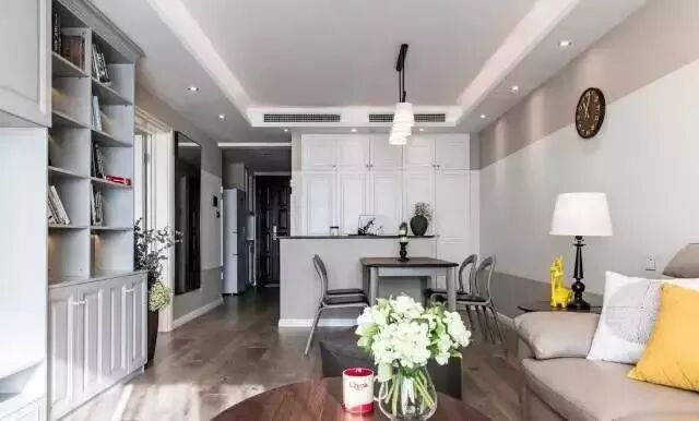 大储物柜和吧台的设计,大大提高了空间的使用率,更多功能的体现使得客厅饱满和实用。