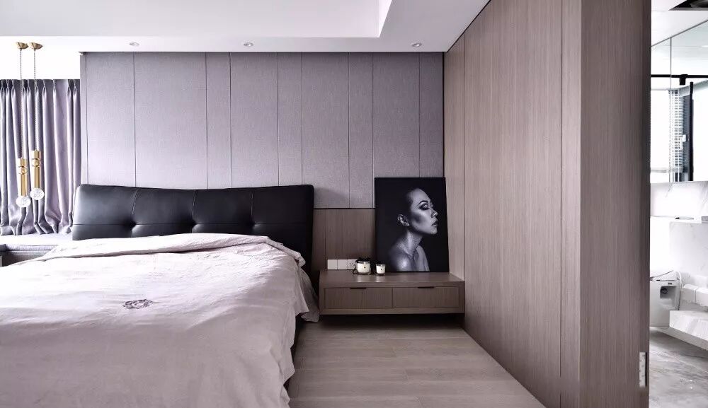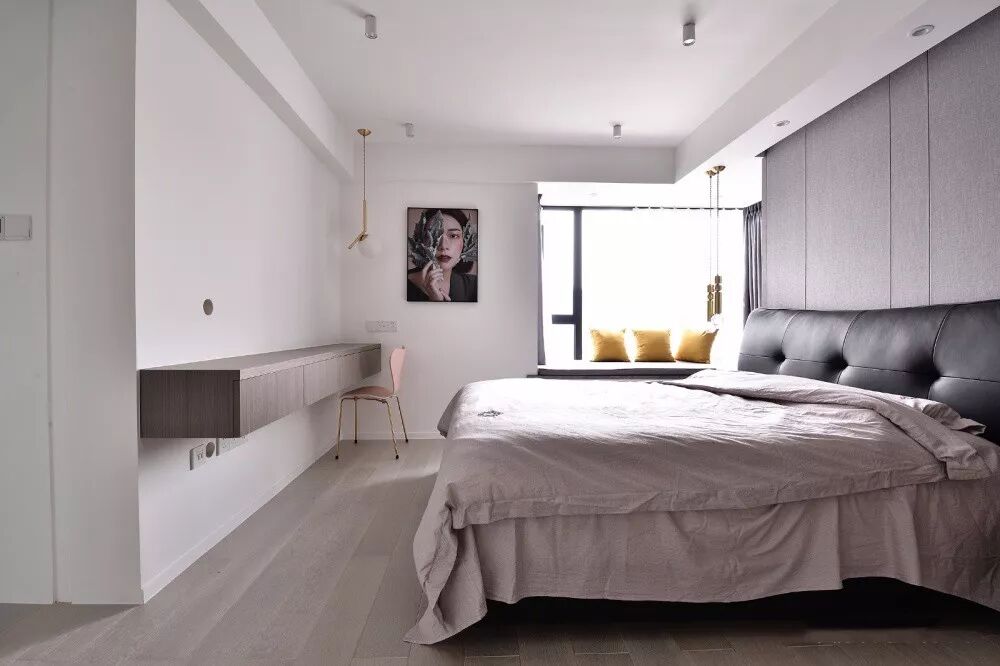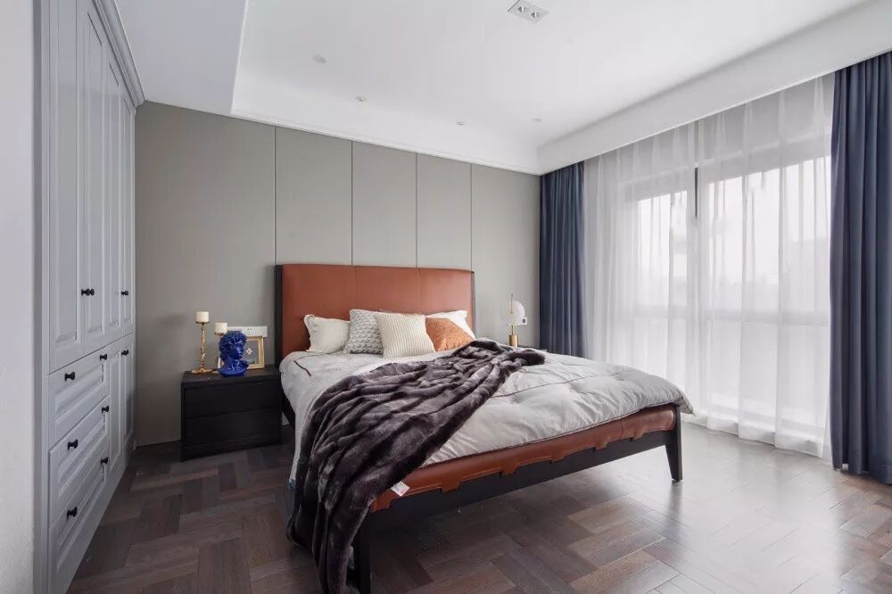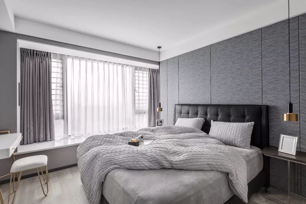 象征着简约与年轻的灰色,把它运用到皮质上面,质感也是非常的端庄高档,尤其是布置在私密安静的卧室里,往往会透露出一种简约冷静的画面。