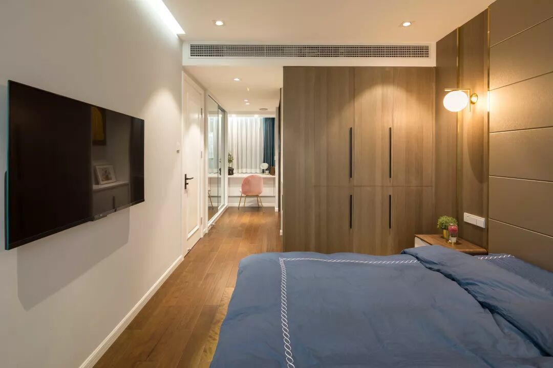 ▲电视墙安装一台小小的电视机,方便主人在睡觉前或者空闲之余看个小电影,追个剧啥的,这样的生活何来虚度,不知多少人向往着呐。