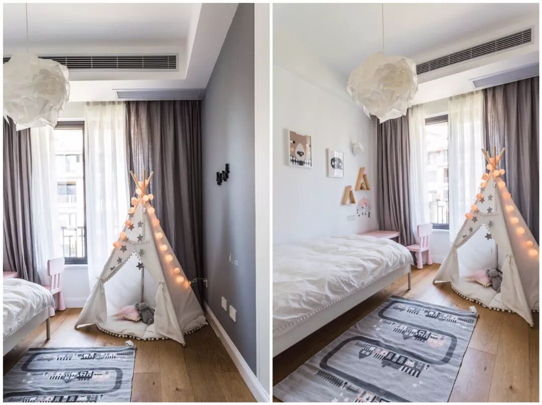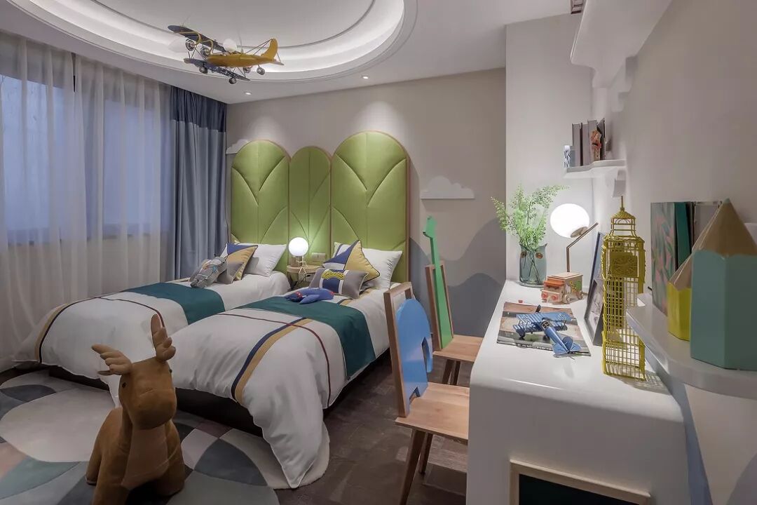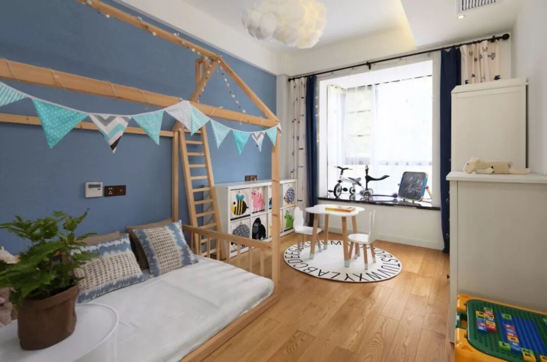 儿童房作为孩子的私人空间,在未来孩子的很多活动时间都会是在这里的,所以在设计儿童房的时候,需要靠安全、舒适与环保的问题。 1、环保问题 关于环保,这是一个隐形的潜在危害,主要是从选材角度出发,选择简单的工艺与相对环保的材料,装修好后尽量放置3-6个月通风,新房装修入住后也应该关注居家环境,日常保持通风,可以购置空间净化器等产品,保证室内封闭环境的相对环保。 2、安全问题 孩子的天性是好动的,所以在装修儿童房的时候,首要的是保持流畅的动线让孩子有足够的空间活动;其次,是避免锋利的棱角,选用圆滑软质的家具为主,防止孩子摔倒或磕碰受伤;另外,孩子喜欢爬高,一些非定制的家具要主要固定到墙上,避免孩子爬的时候家具翻到,压到孩子。根据不同的家庭情况,在安全问题上要考虑的问题也要有不同的考虑。 3、舒适问题 除了健康与安全,一个舒适的儿童房空间,往往是保障孩子愉悦心情,是孩子快乐成长的保障,根据不同孩子的年龄、体型、爱好等,儿童房的设计是有很多可能性的。