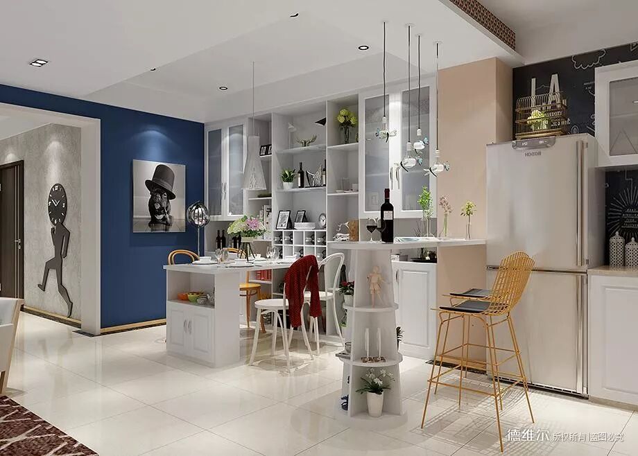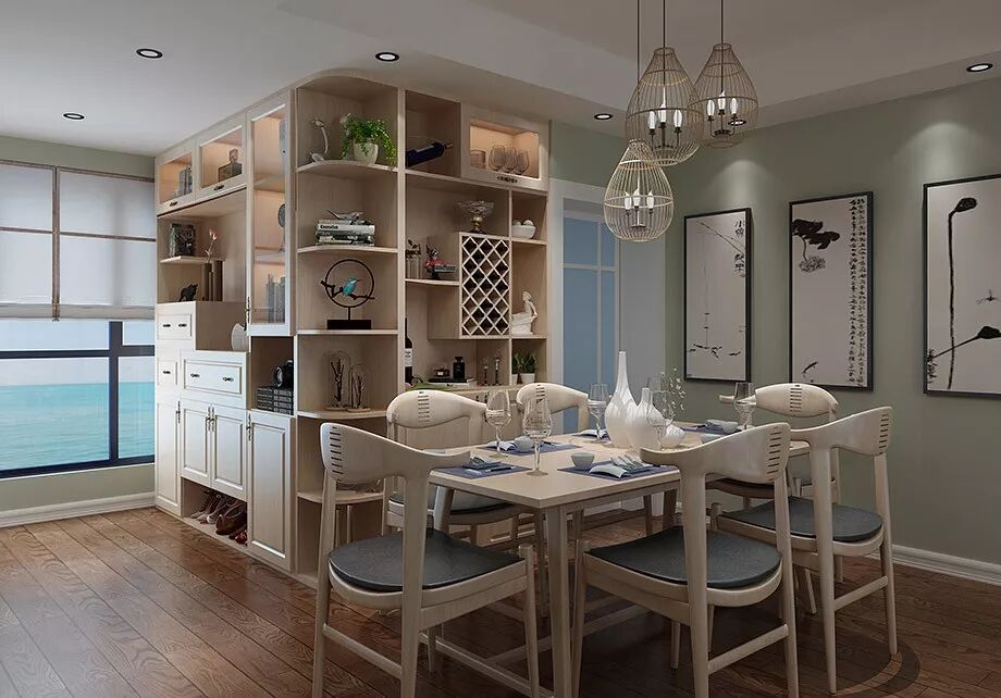 利用隔断酒柜,完美的将客厅与餐厅区分。既节省空间,又能凸显业主是个爱酒之人。而且隔断酒柜还可以充当家里的一道亮丽风景线。
