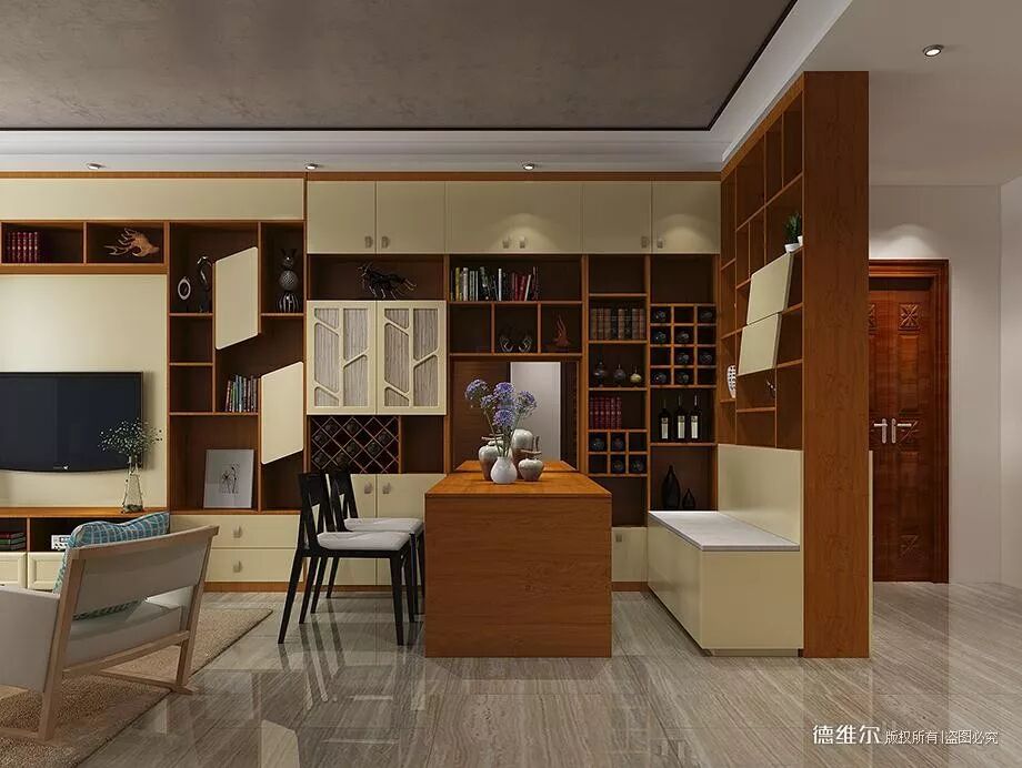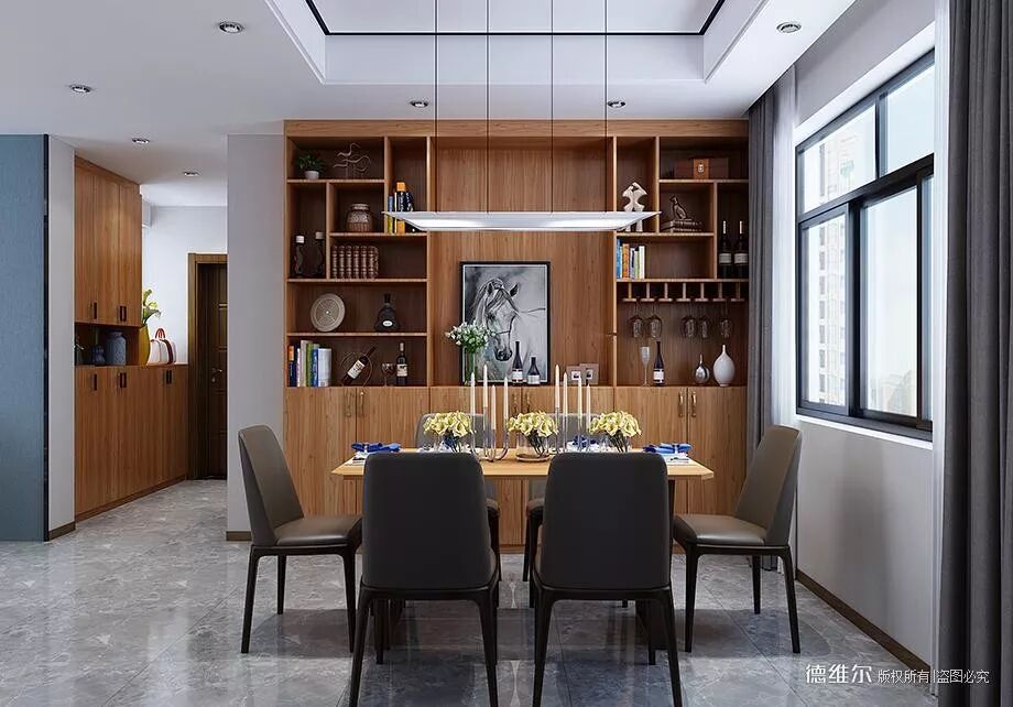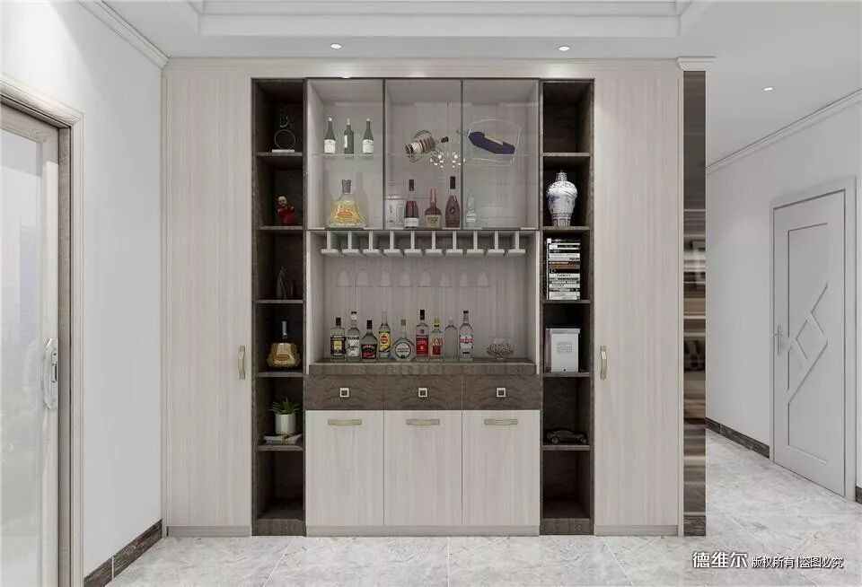 一字型的酒柜是目前比较多用户选择的一种设计,装在餐厅上,不占空间,集藏酒、储物与装饰于一体,可放置格调小摆件,既实用又很有范儿!
