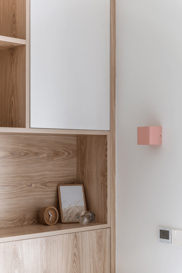 ▲ 留白墙面点缀北欧风壁灯,开关设计在抬手就能碰到的地方,方便实用