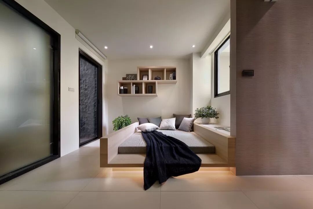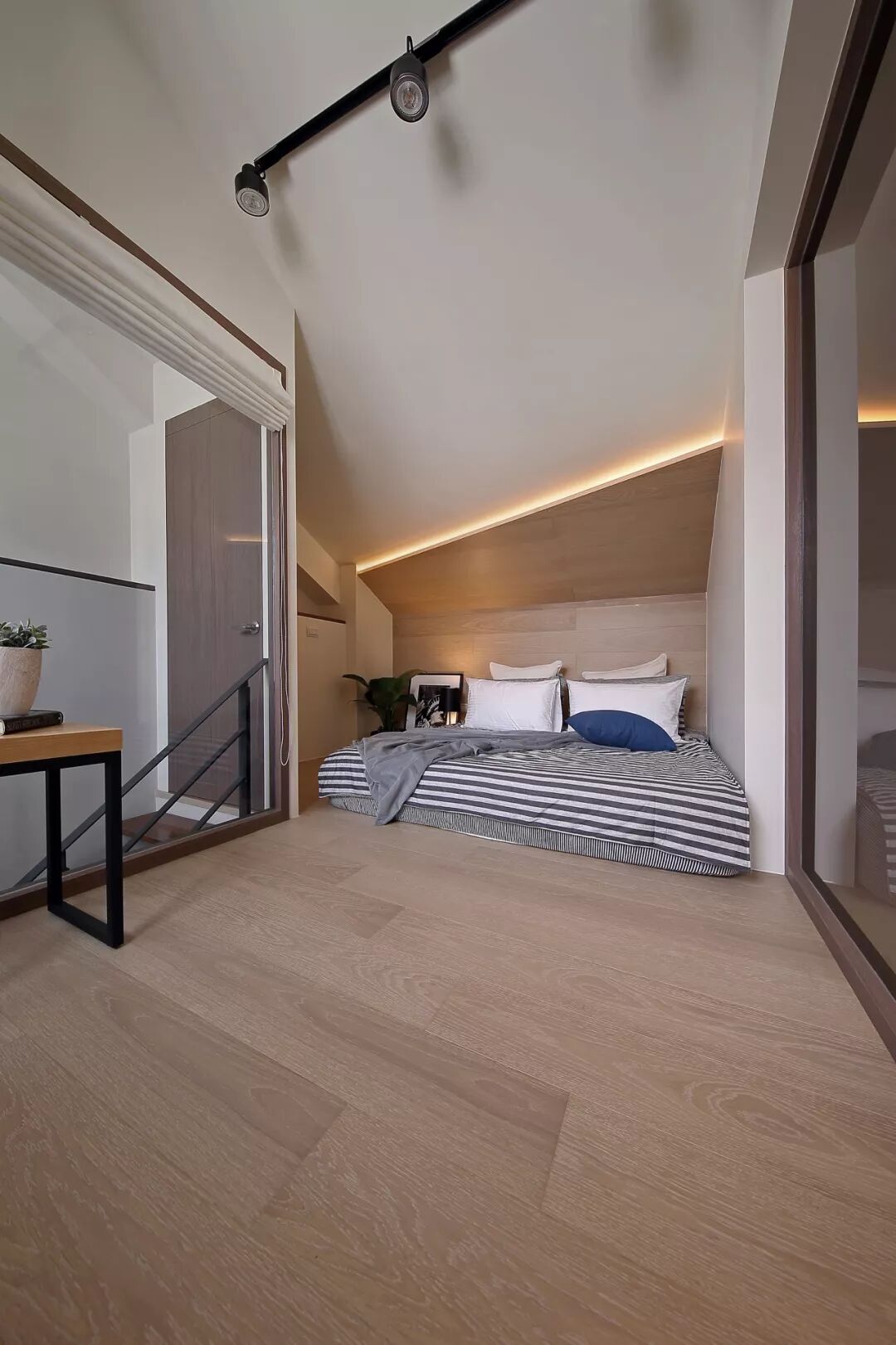 这个榻榻米位于主卧与衣帽间中间的通道里,设计师问,大家知道为什么这里要设计一个卧榻吗?原来通过前期的调研问卷杨允帧发现房主夫妻二人性格差异比较大,时不时会有争吵,卧榻主要用于吵架后先生临时休息和平复情绪,后期发现使用率确实蛮高。