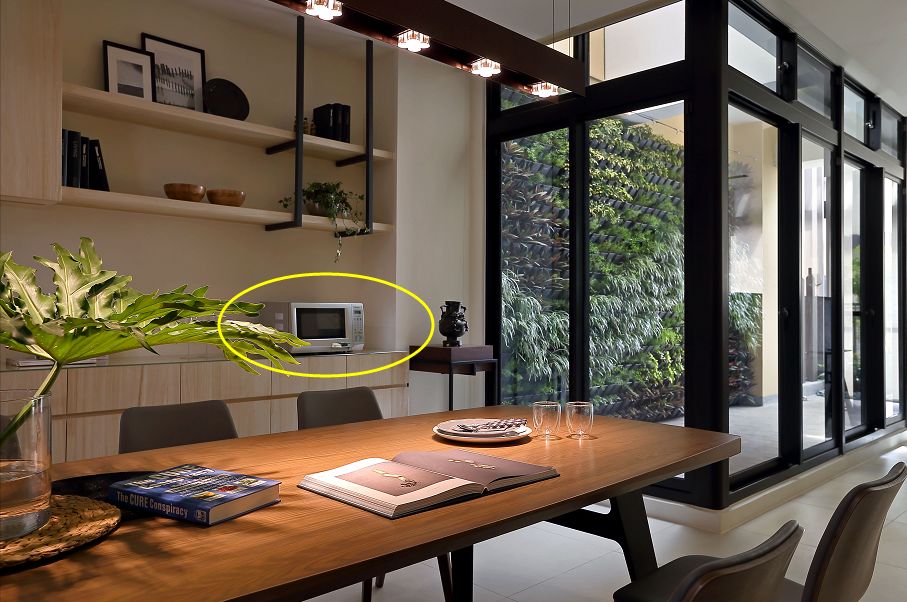 看见台面上的微波炉了吗?也包括桌椅,基本上都是原来老宅中用过的东西。怎么样更好地保留这些旧物,既不浪费资源,又跟新的空间设计没有违和感。设计师在方案实施之前跟业主三番五次深度沟通,同时让业主填写了详细的表格,告知了这些物件的尺寸、品牌、颜色、新旧程度等等。