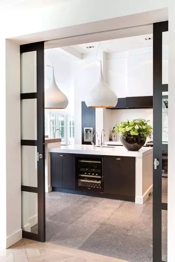 封闭式厨房的情况下,可以采用整面的玻璃推拉门。