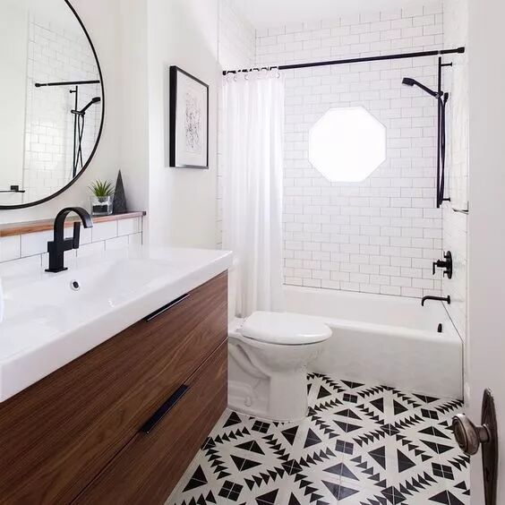 如果卫生间实在很小,那只能用浴帘干湿分离了。在电视剧里经常会看到这种帘子式的隔断淋浴间。好处是能保证卫生间的开放性和明亮感。