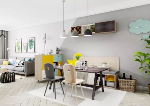 这个不用过多解释,直接用这沙发或是一张地毯,就是客厅和餐厅的最好隔断。