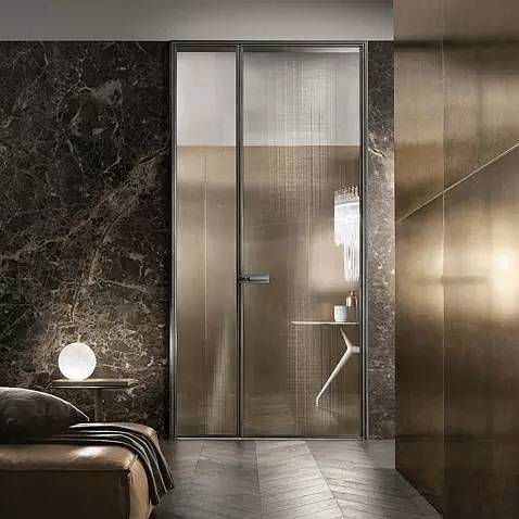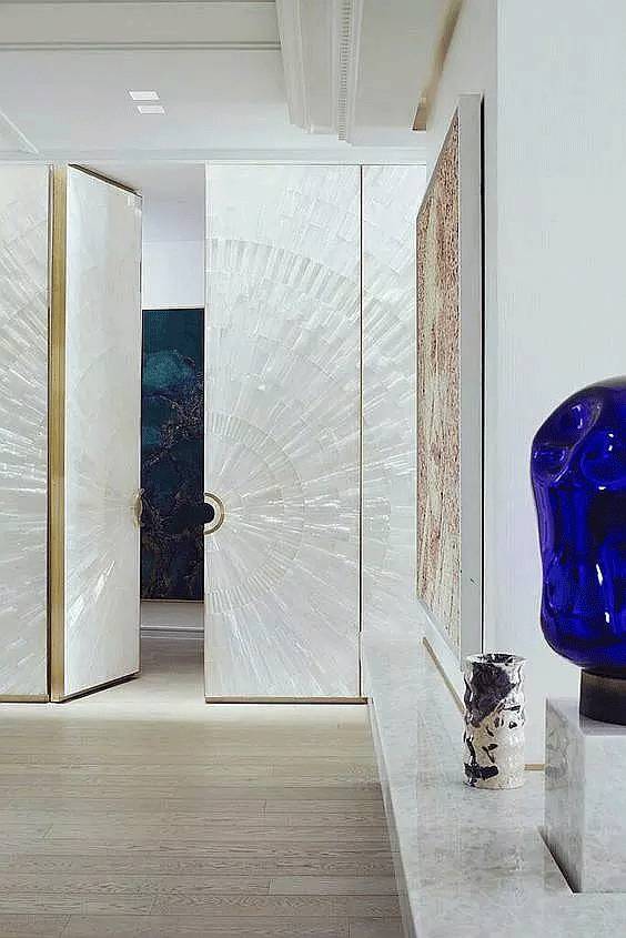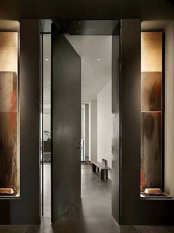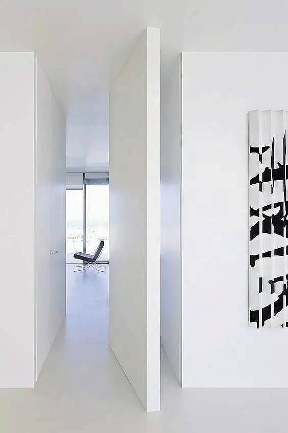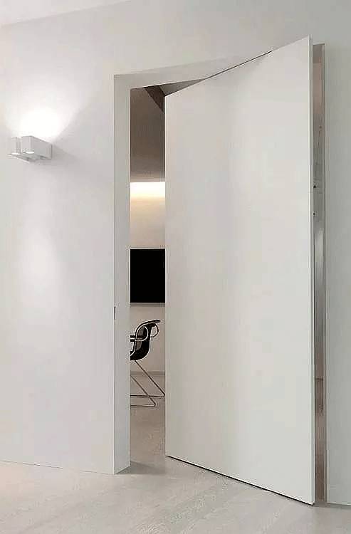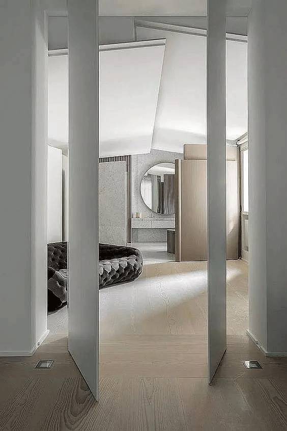 旋转门常见于大户型中,此时的它们更多为营造特定的空间设计感而存在。在大户型套间的结构中,大门、各种分割区间都可以使用隐形门,兼顾门、隔断塑性等各项功能。