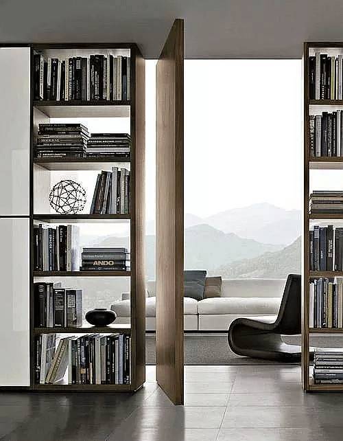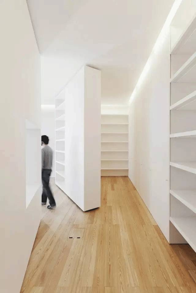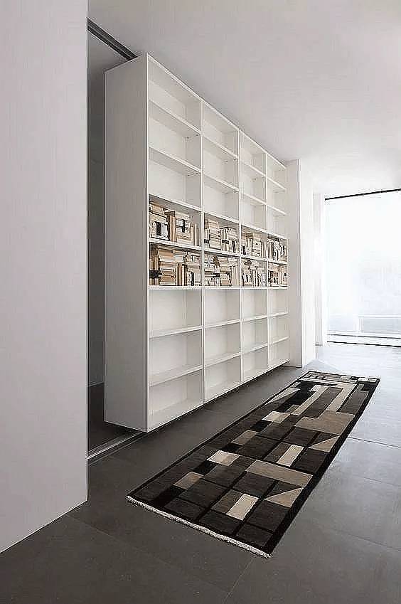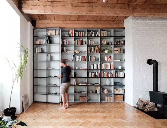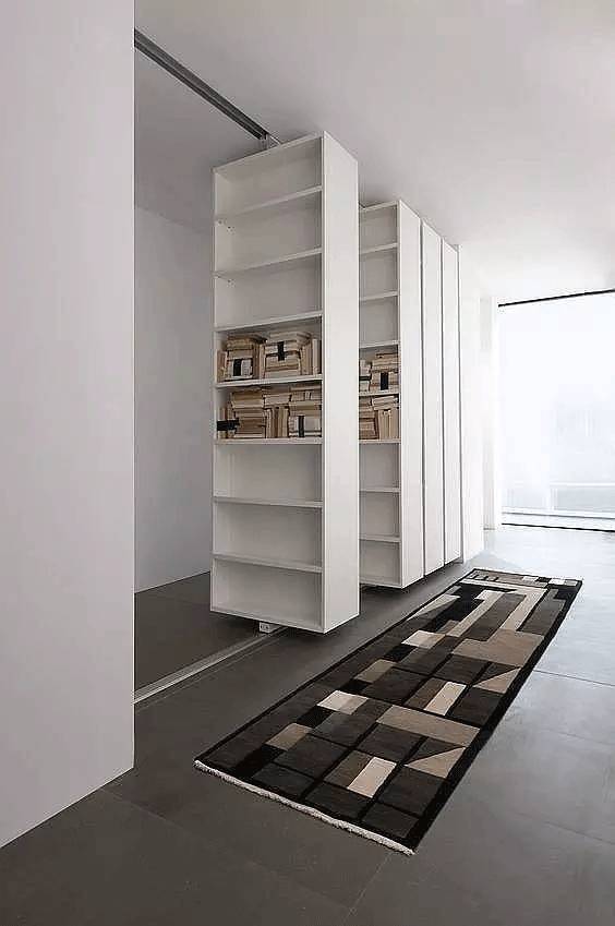 很多的隐形门都出现在一大排收纳架的后面,一来用作收纳使用,二来收纳架上的纹理刚好是隐形门隐匿自己的不错伪装砝码。将门打开,一个属于自己的私密空间得以展现。