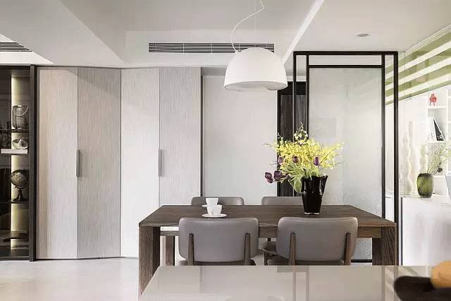老土的门厚重的门框在现代家居中是不是有碍眼呢?利用一堵轻体墙+隐形门的设计,既可以节省空间,又能增强空间视觉效果,简约又整洁。