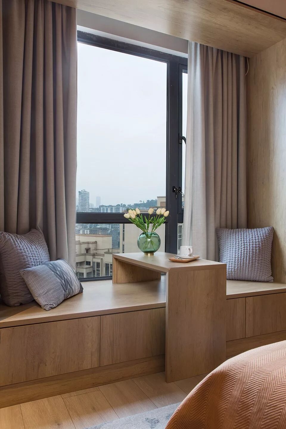 飘窗台装成木质,自然温馨真舒适