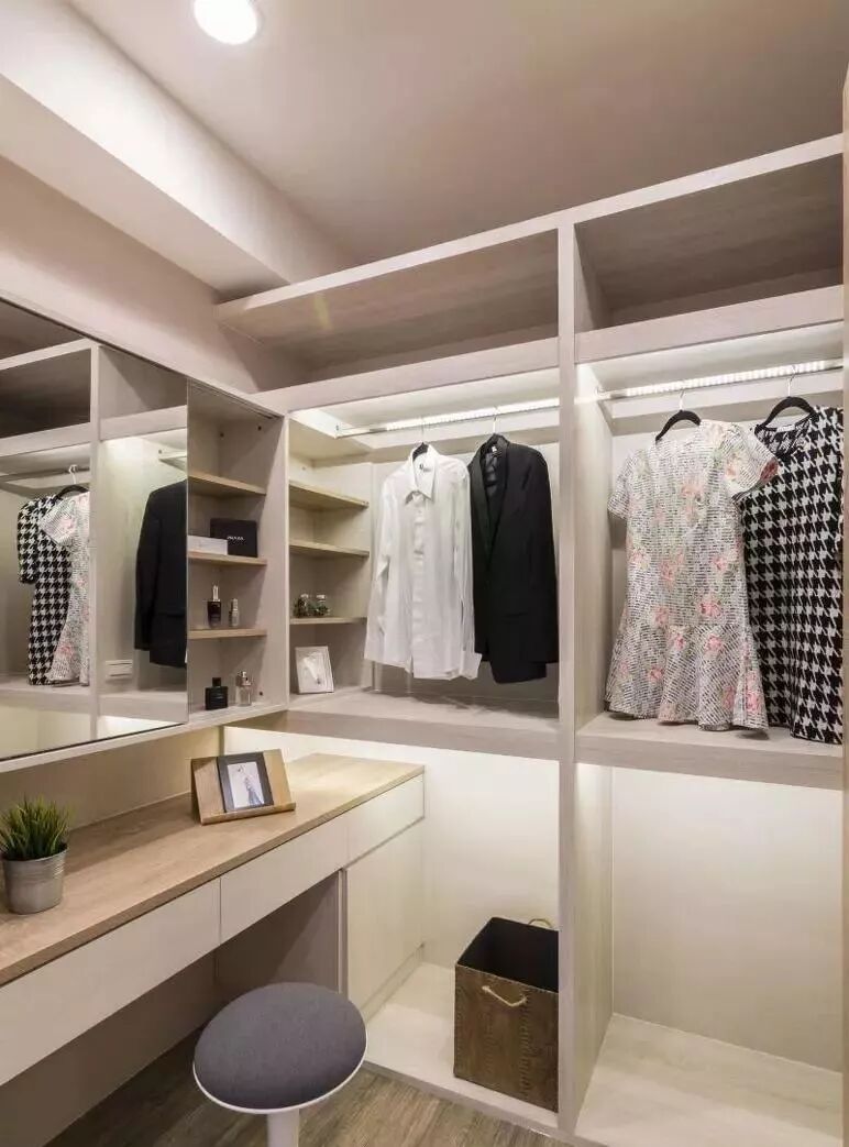相信每个女人都想拥有一个属于自己的衣帽间,里面放着自己喜欢的衣服、包包、鞋子,可是都说家里空间不够,不能拥有,那你就错了,不是只有大户型才有衣帽间,小户型也可以自豪说声我也是有衣帽间的!