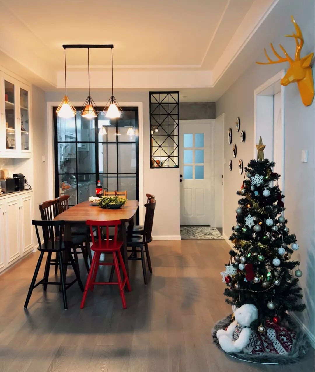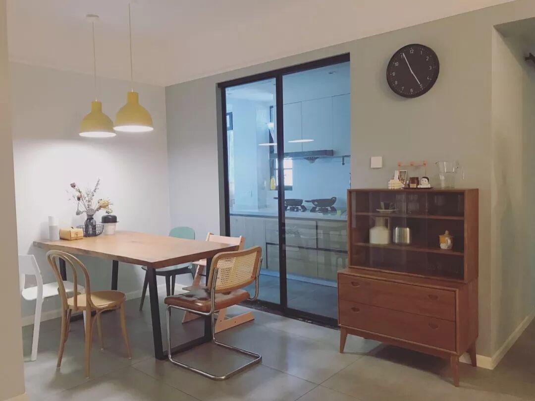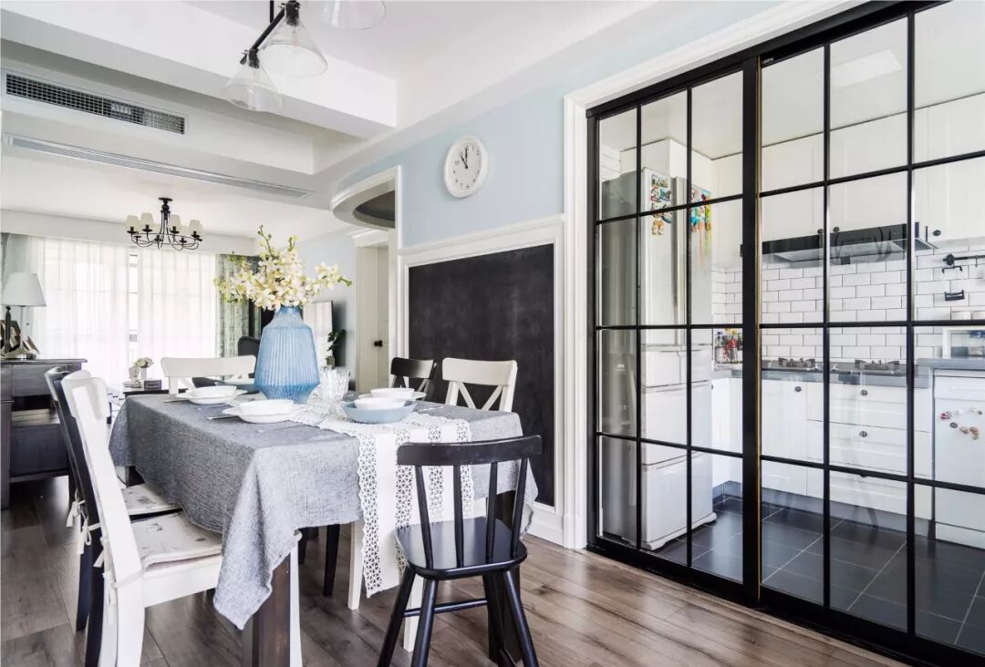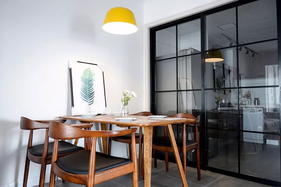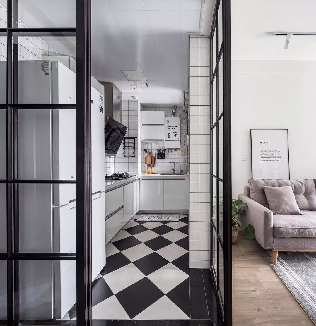 在多数家庭的装修中,厨房门都是选择玻璃推拉门的设计,若是觉得木色陈旧、白色不耐油烟的话,那么换上一扇黑框玻璃推门,搭配上简约文艺的细节布置,将会使得整个厨房充满清新舒适的氛围感。