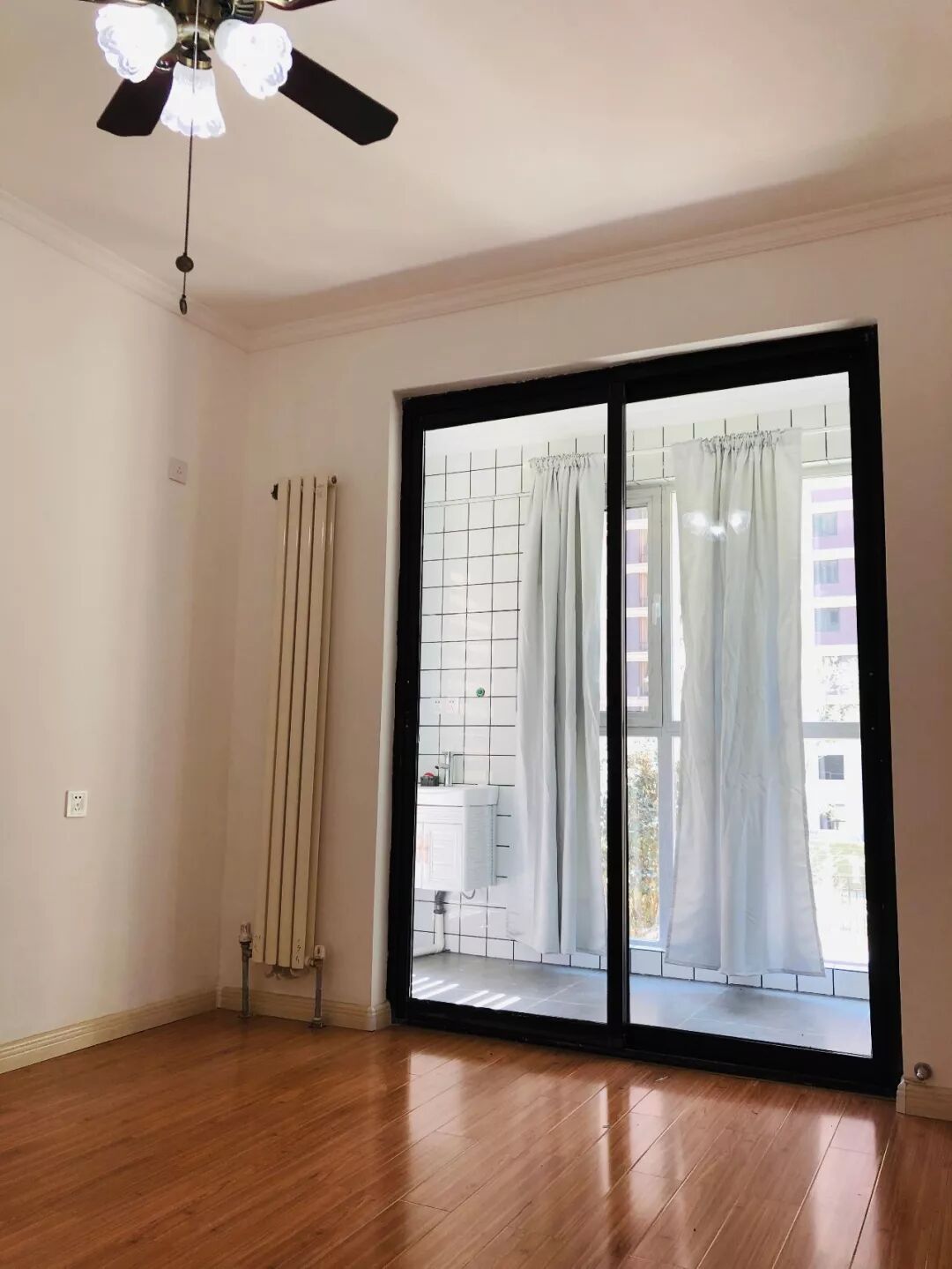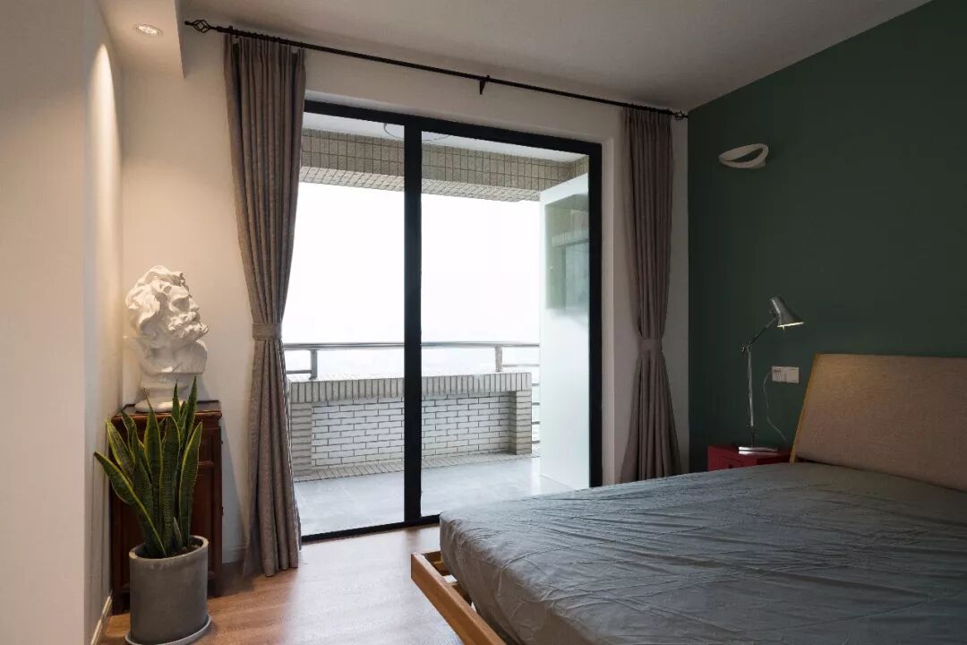 阳台是连接室内外的空间,以黑色框来装饰阳台玻璃门,能使得空间更有端庄的稳重感,档次雅致。