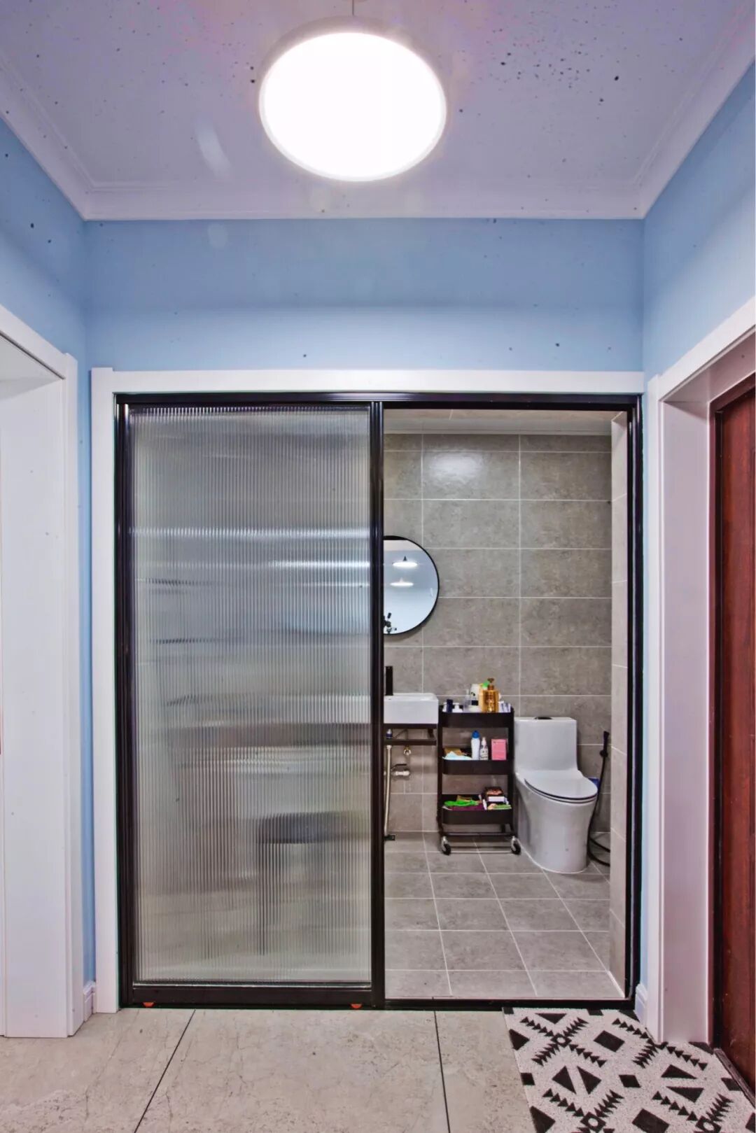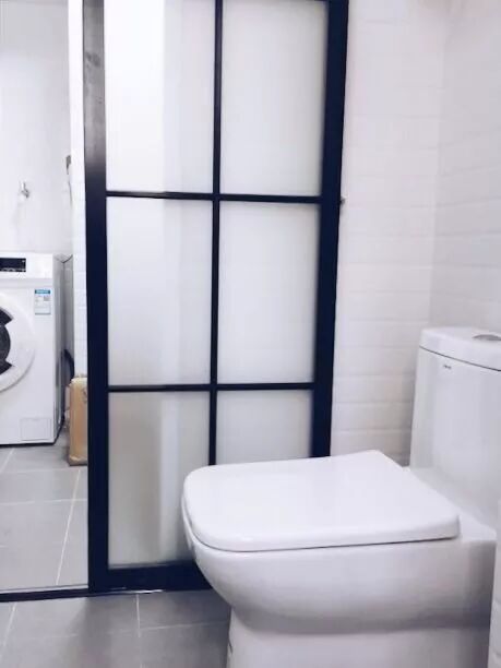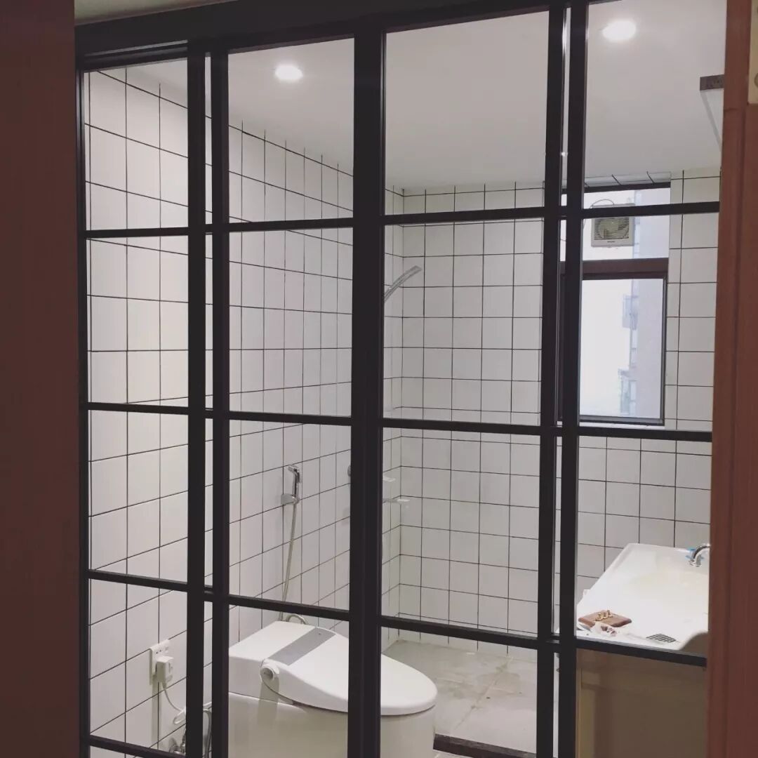 卫生间的五金件近些年出现了黑色主题的元素,因此卫生间的铝合金门也换成黑框的话,那么整体空间将会显得更加的和谐自然。