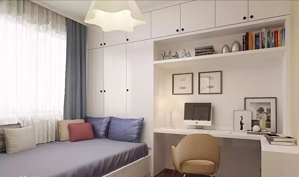 飘窗处做一个小型的榻榻米,闲暇时光坐在窗台看车水马龙,云卷云舒;惬意极了~