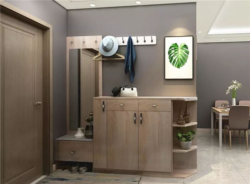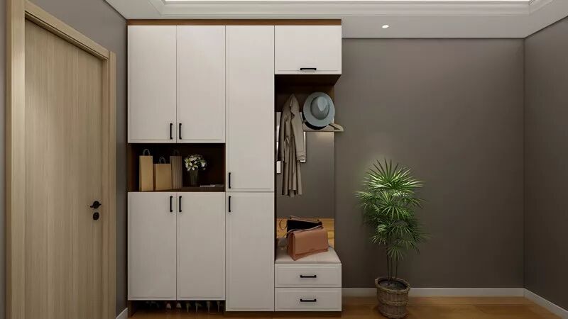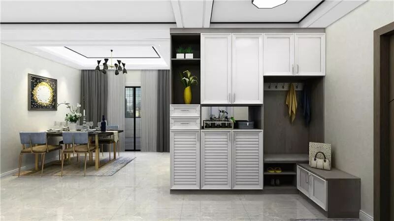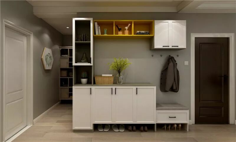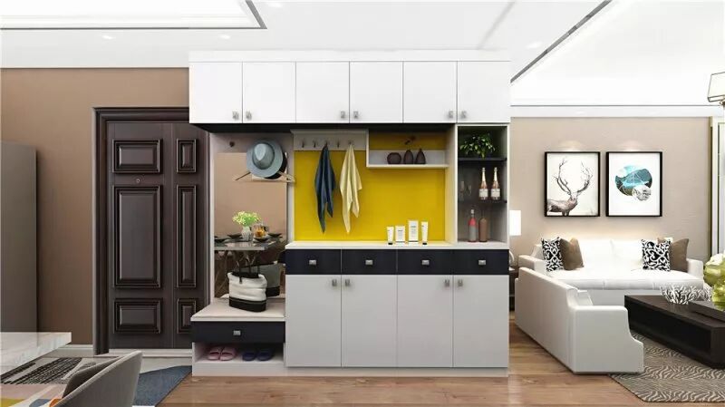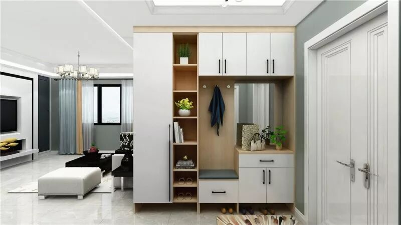 如果玄关设计合理,下班回家脱下来的衣服、鞋子、包包、钥匙、甚至于快递包裹都能整齐的摆放,给朋友的第一感觉就是舒服干净。