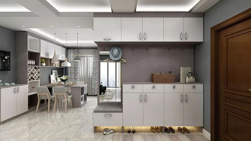进门玄关关系一个家的形象,如果没有合理的玄关设计,脱下来的鞋子满地都是,给人的第一感觉就是这个家太乱啦!