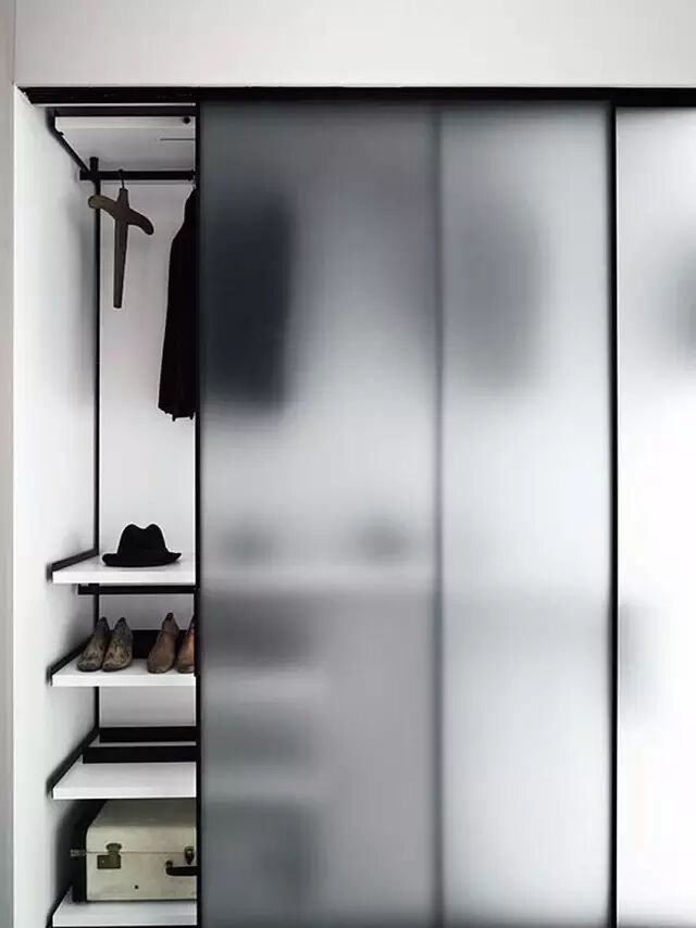 磨砂玻璃能够保证一定的隐私,用来隔断卧室、浴室的话非常合适,而且磨砂独有的雾面朦胧感,相比通透一览无余更有神秘的意味。