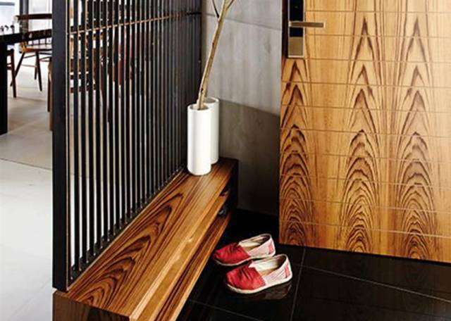 进门玄关处放个小鞋柜就可轻松将玄关与客厅分割开。