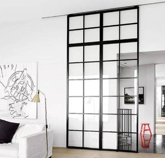 单一的大片玻璃设计感不够,不如选择这样以框格镶嵌而成的玻璃隔断墙,浓浓的工业风,前卫有态度。