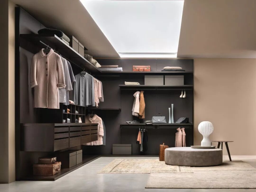 通顶式衣柜——房顶齐平的衣柜设计,这种衣柜还通常与地面无缝连接,充分利用有限的空间面积,让收纳功能达到最大化。