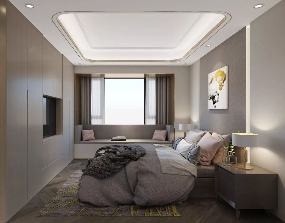 推荐:天花板和窗帘杆相连,整面墙会产生“落地窗”的感觉,非常大气。
