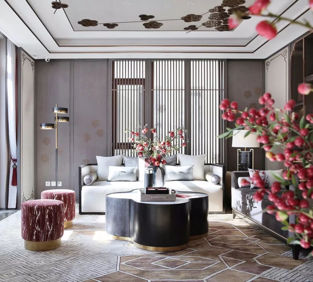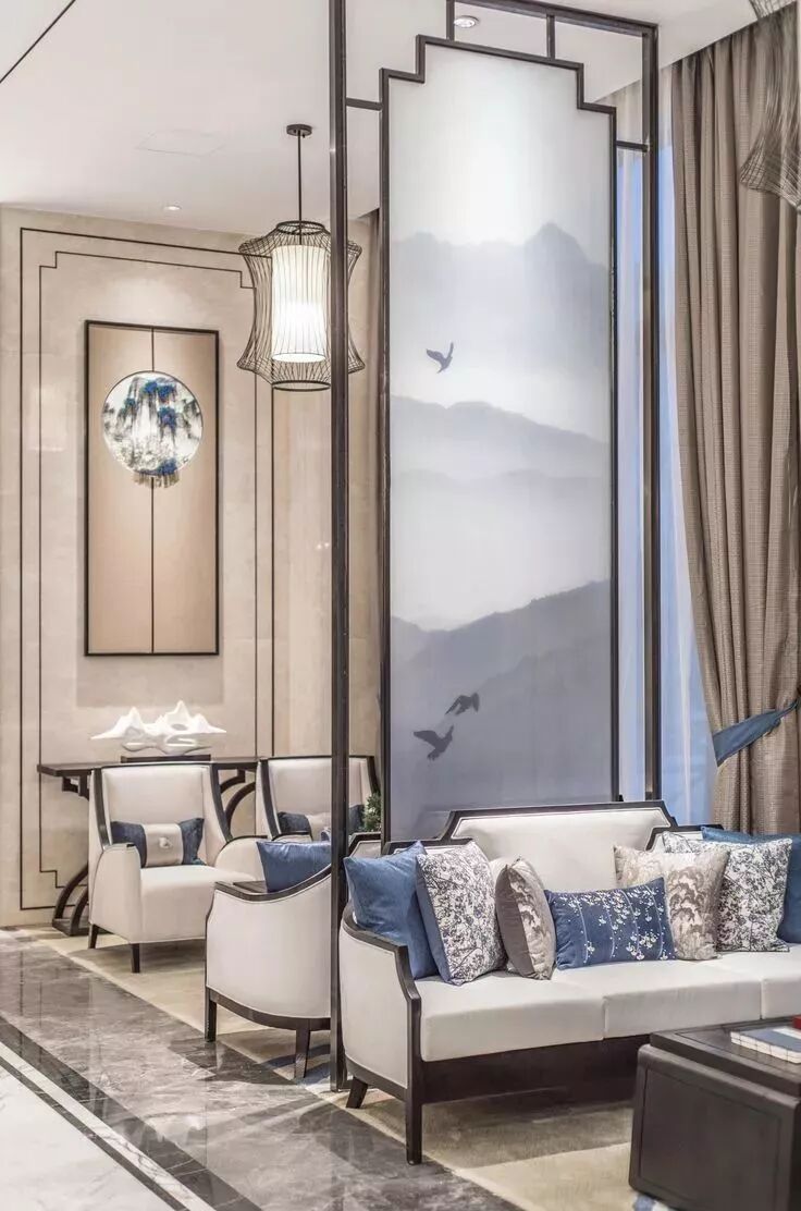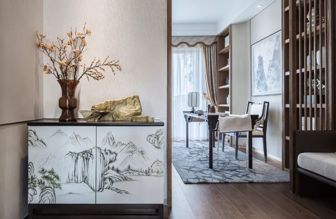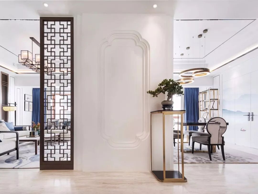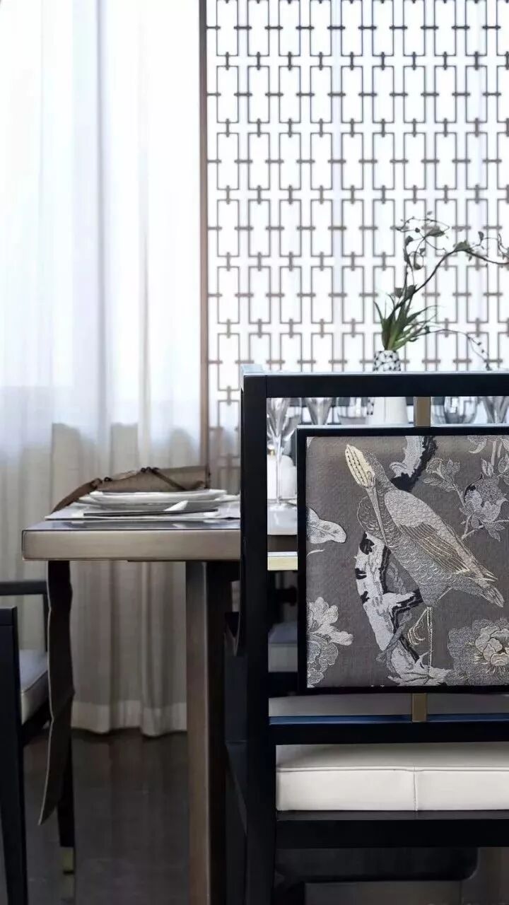 新中式风格中还有一种出镜率很高的隔断形式,便是朴实无华、典雅大气的木质镂空隔断。