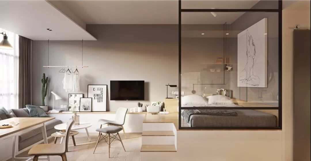 玻璃是国外常见的隔断材料,它拥有通透、时尚的特征,再搭配当下风靡的极简设计,可以升华整体的环境格调,让空间变得气质非凡。