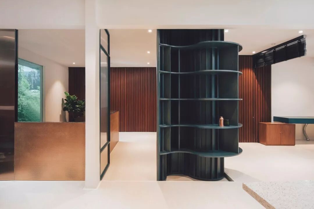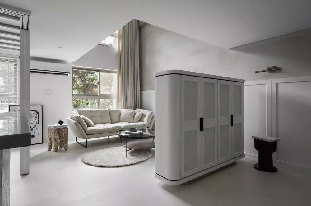 这种隔断比较追求实用性,既能起到分隔空间的作用,又能增加收纳、展示、优化布局等功能,实现不同区域的交流与互动。