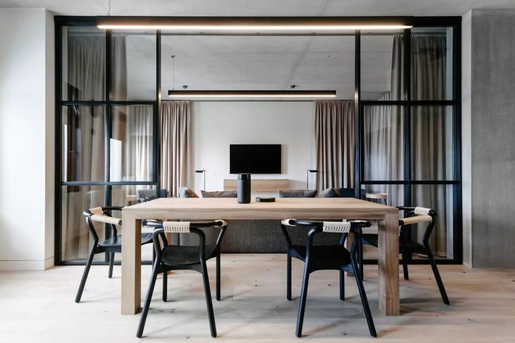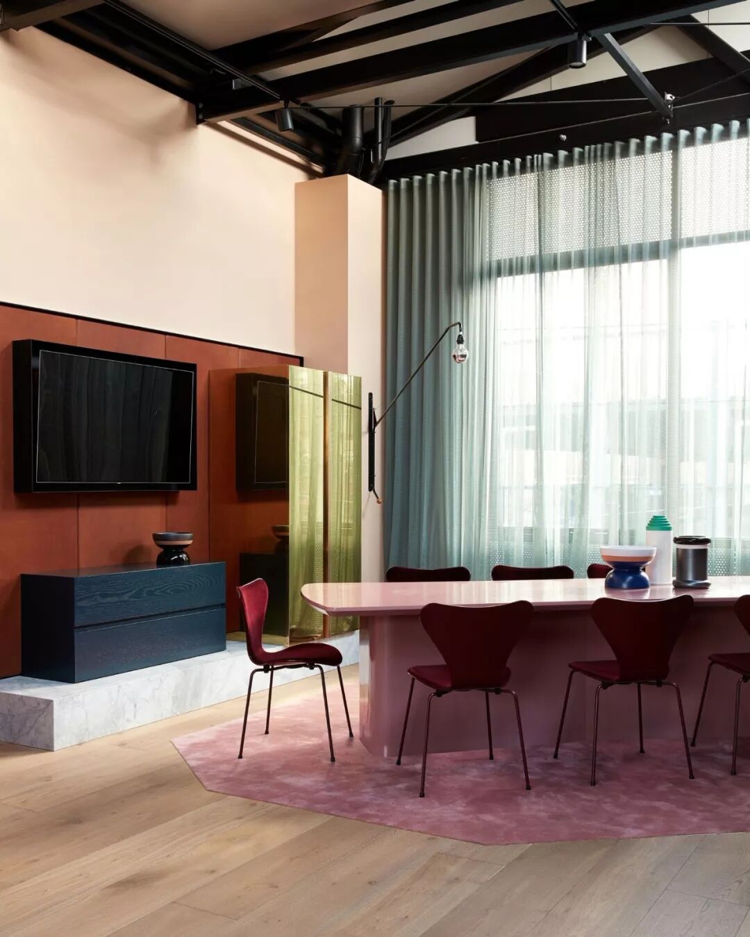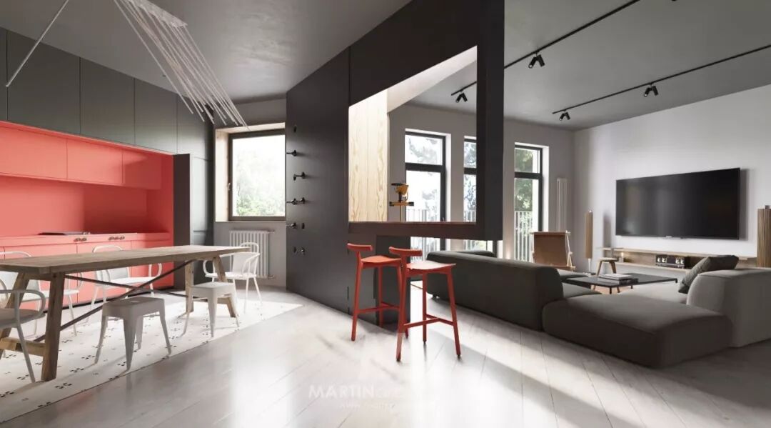 除了备受青睐的黑框玻璃隔断外,拱门彩色玻璃、红色框架玻璃等,也可以增添空间的个性魅力,产生更为微妙的化学反应。