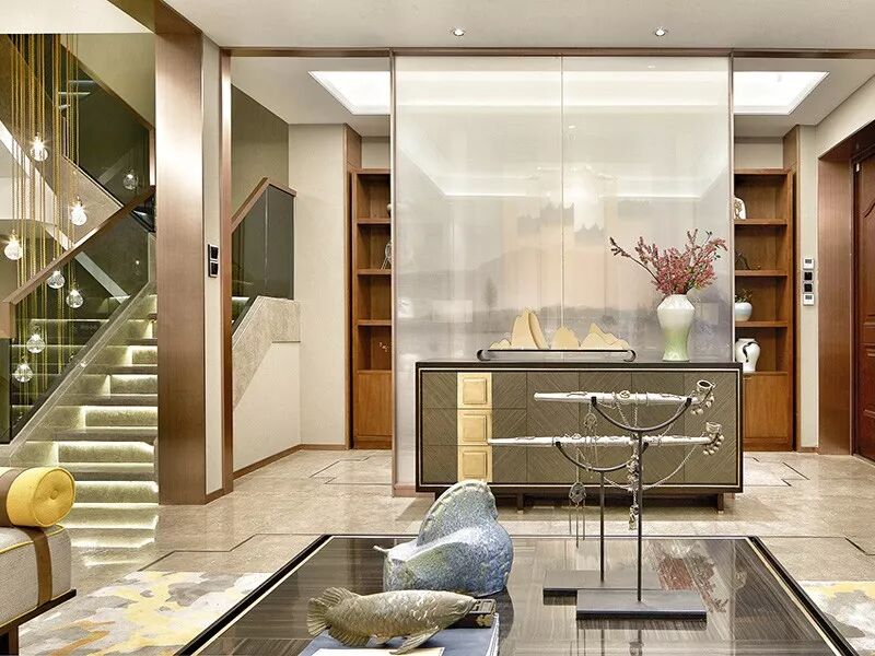 沿用到新中式风格中,中式博古架的设计则简化许多,集实用与装饰为一体,反映出主人极为高雅的文化气质。