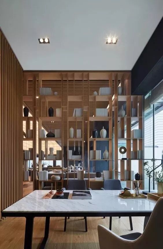这种隔断多以天然原木制成,自然独特的纹理及干净利落的线条,营造出了丰富的层次感,让空间变得更有弹性,散发着无限的古典风情。