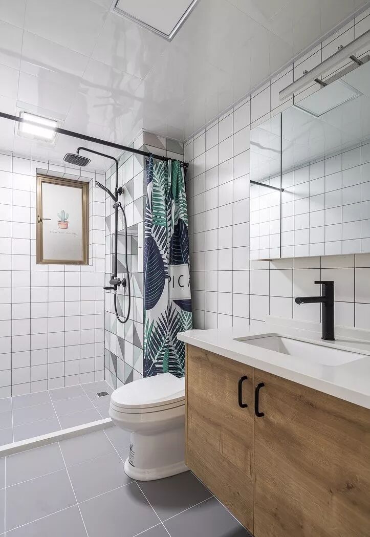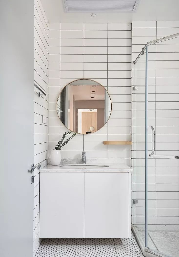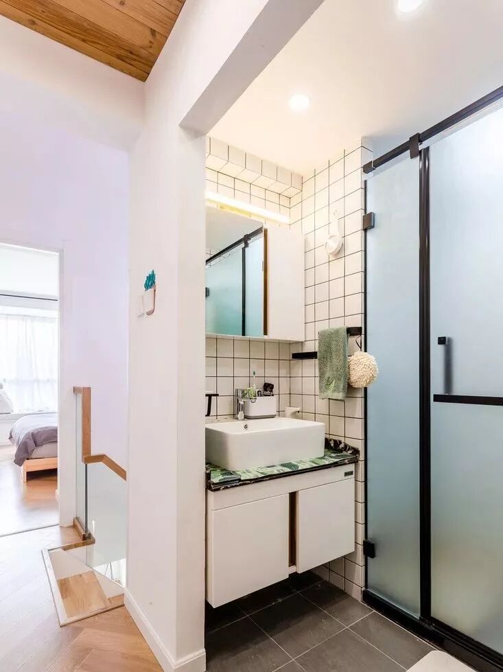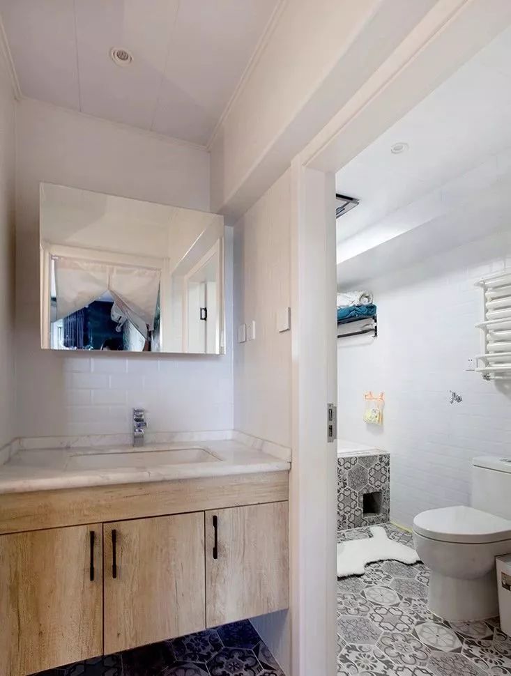 所以如果你家卫生间不是特别大,就不要想着把什么都塞进去了,浴缸拿掉,洗衣机拎出来,台盆独立出卫生间之外,你会发现小小的卫生间用起来还挺宽敞。