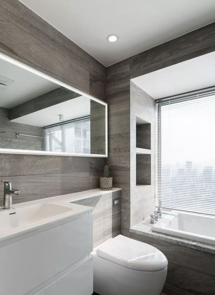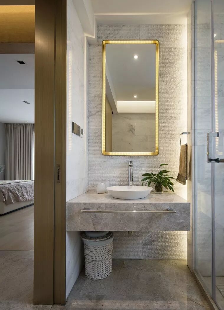 小编以前的文章中就有说过这种干湿分离法,把洗脸台单独隔离出去,变成彻底的干区,如下图这样↓
