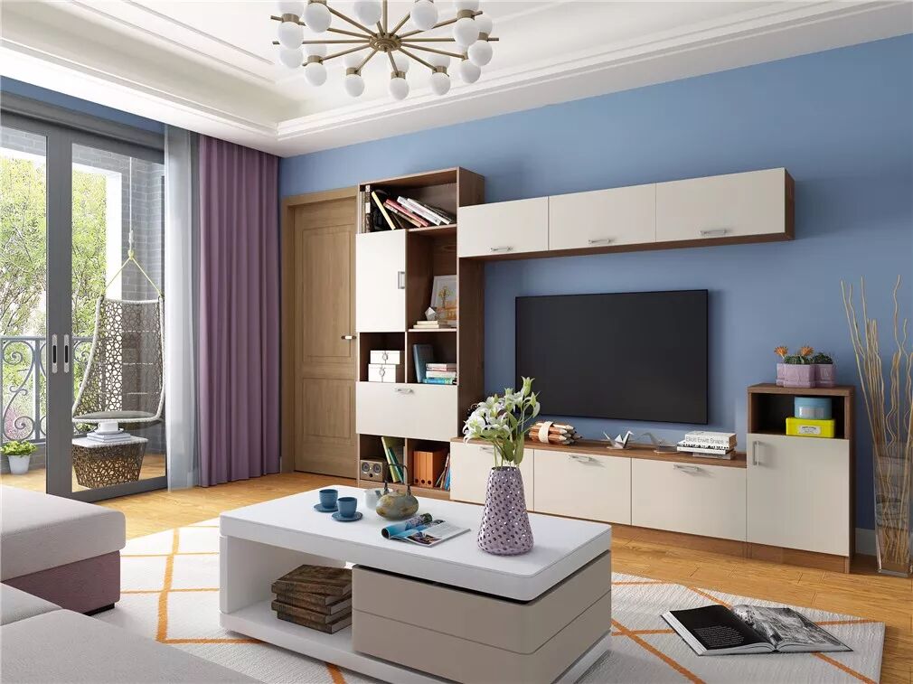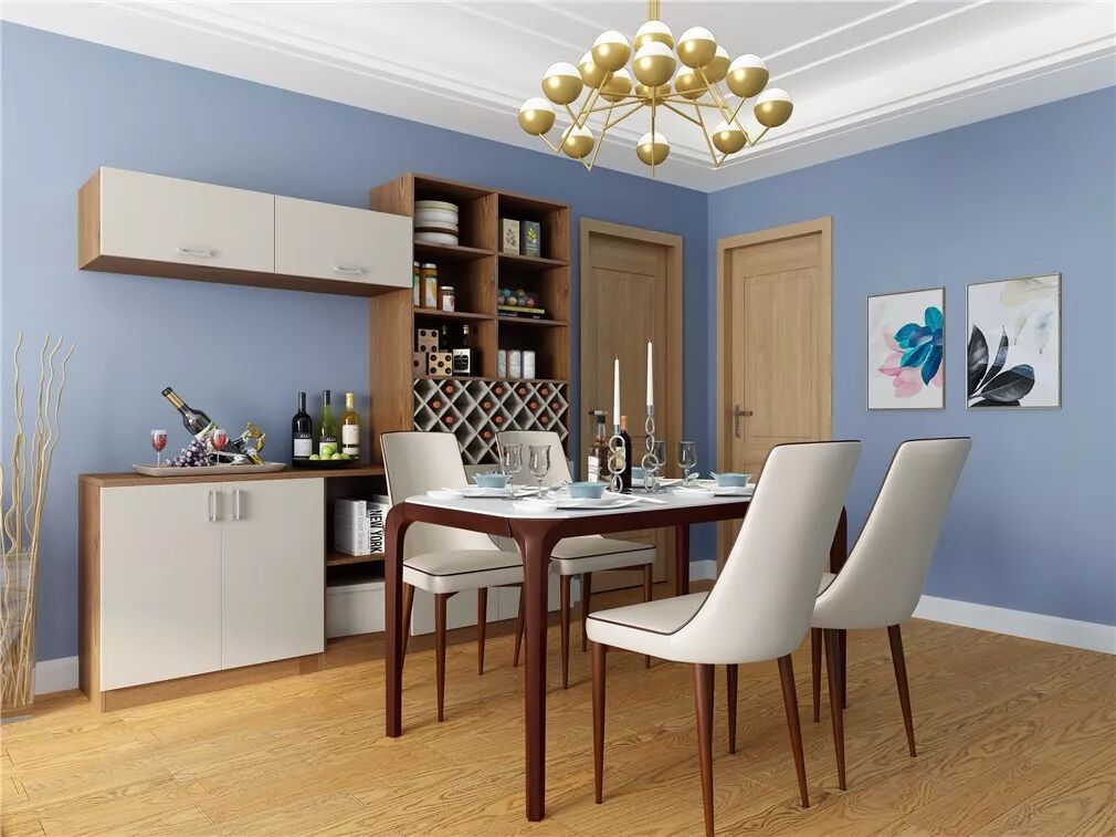 这套家居方案非常实用,光是进门的电视柜,容量就已经相当丰富了。淡蓝色背景墙与粉嫩的家具色彩和谐;走到客餐厅的主场,靠墙一侧是酒柜吧台,美酒醇香;餐桌上,当然还有家人精心准备的佳肴。