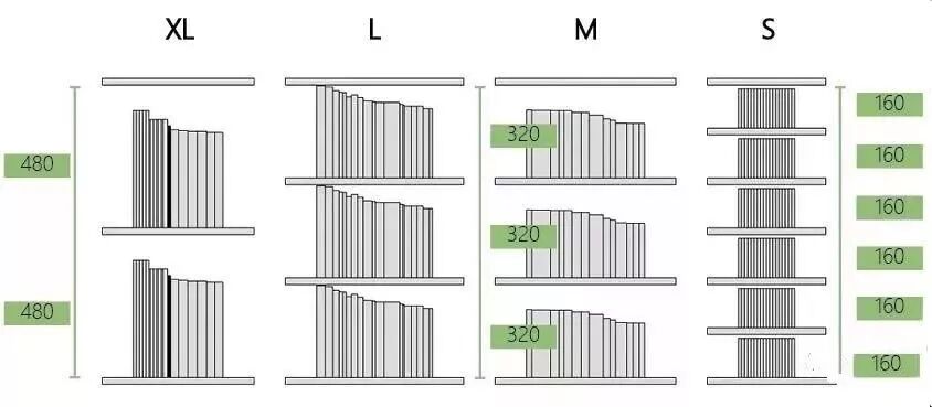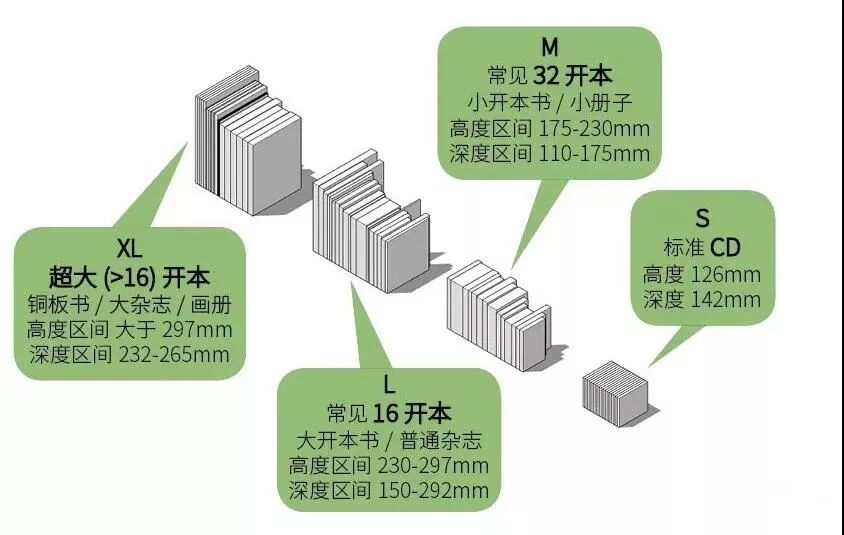 16开本和32开本是在我们常见的书籍的尺寸。推荐常用书柜层高320mm,基本满足,具体还可灵活调整为280/300/350mm。