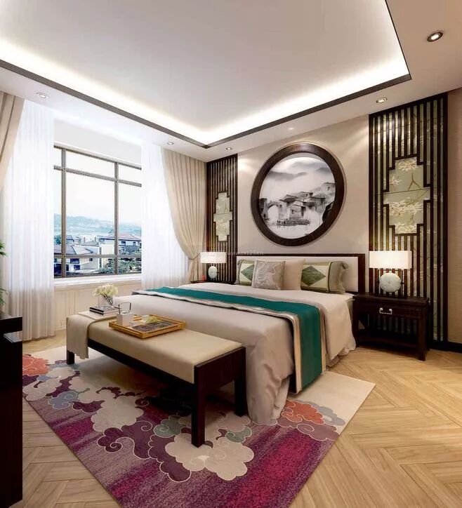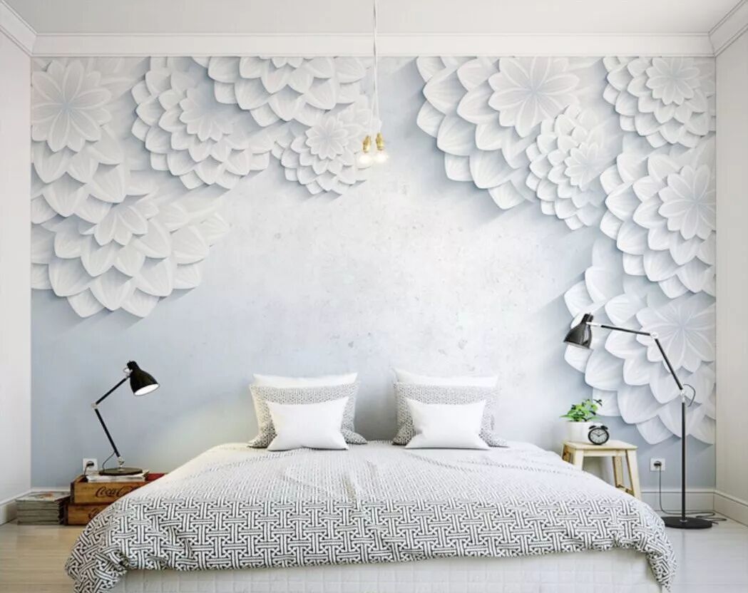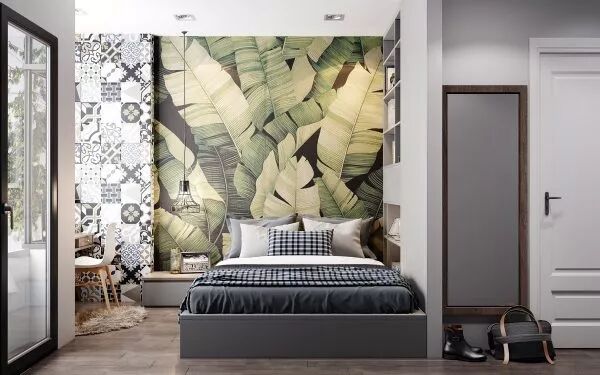 如果不想花费很多精力在卧室背景墙上,那用壁纸或壁画绝对是省时省力又能保证品质的选择。