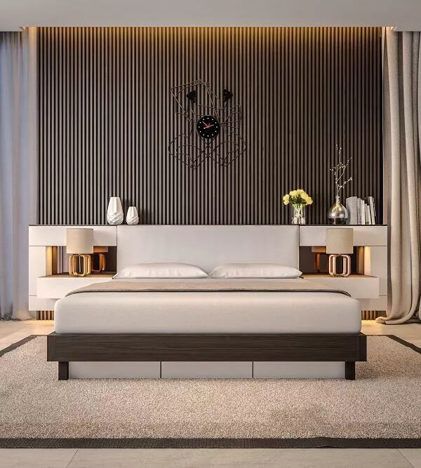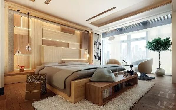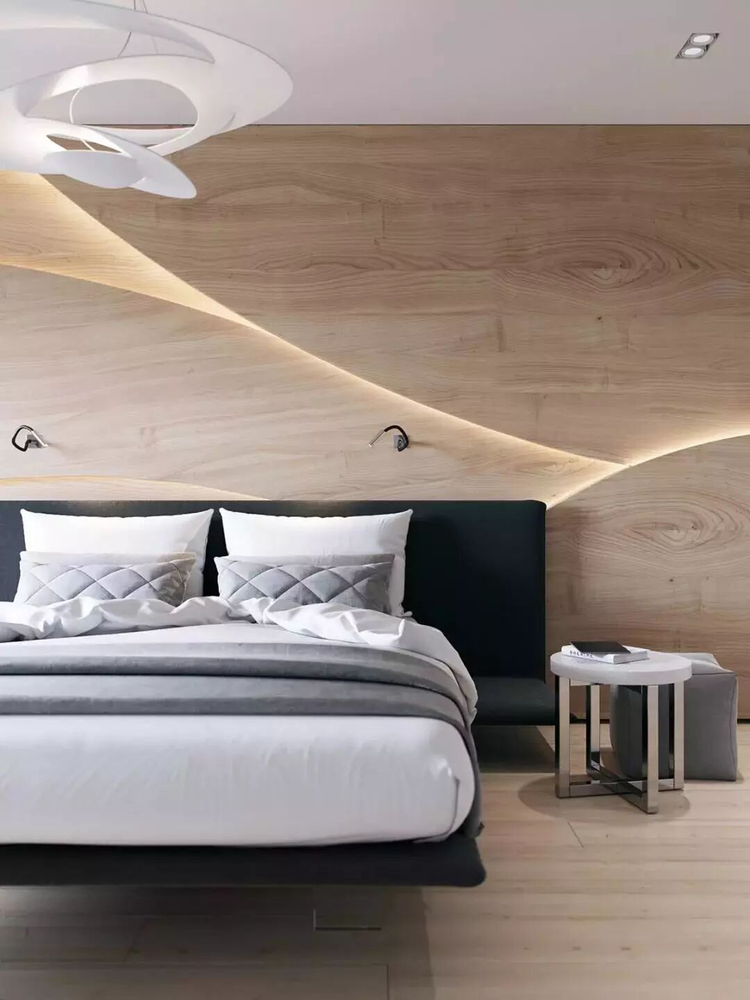 如今,简欧风格收到大家的青睐,原木设计在全屋设计中占有越来越多的比例。用一面简简单单的木质墙,就能让你的卧室高档起来。
