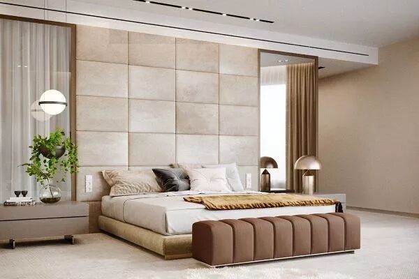 要说最能展示高贵优雅的气质,非软包莫属。皮质或其他布料的背景墙质地柔软,提升档次。