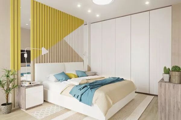 纯色壁纸的使用,会让空间更加简洁。使用鲜艳颜色的壁纸与其他墙体形成强烈对比,这样的设计让卧室鲜活起来。