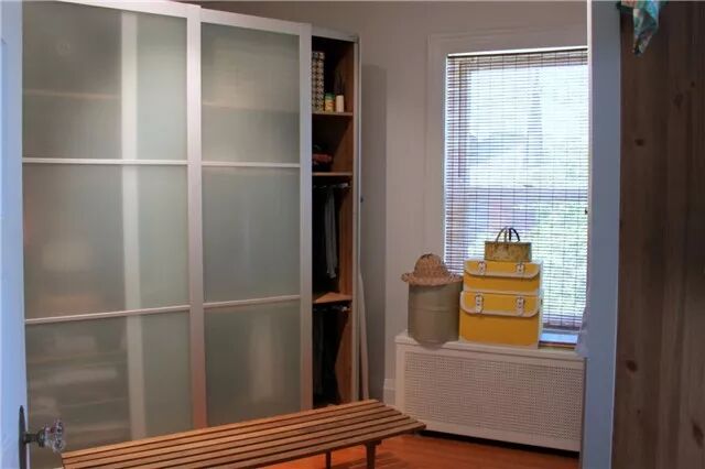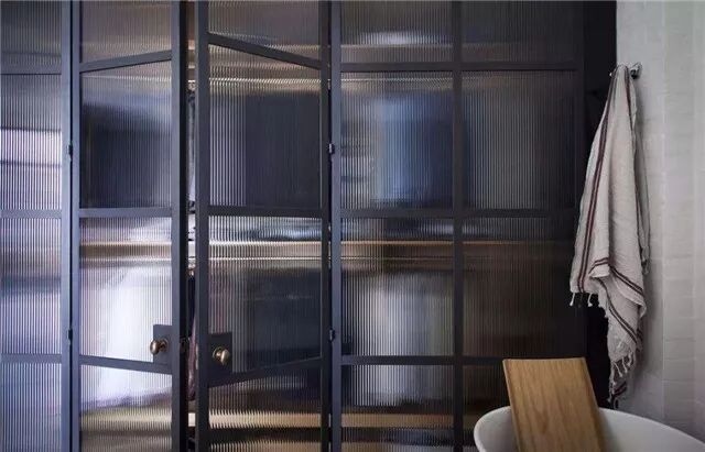 不习惯这种完全透明的柜门,半透明的磨砂玻璃也是很好的选择。朦朦胧胧的雾面玻璃,兼具透光性与隐蔽性,有一种欲说还休的现代美感。