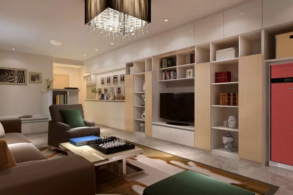 卧室里如果想过要放一个电视,那不妨在电视柜上花一点功夫,设计成到顶包围式的收纳柜兼电视柜,这块位置既然不影响主人观影的兴致,也可以满足房间大量的收纳需求。