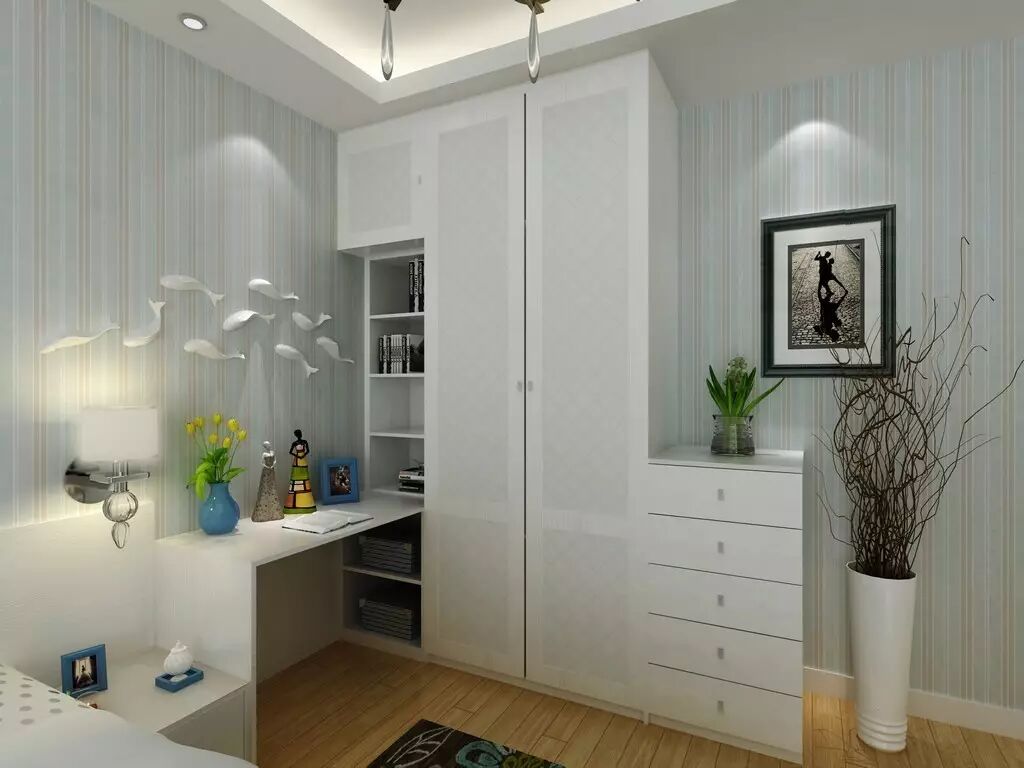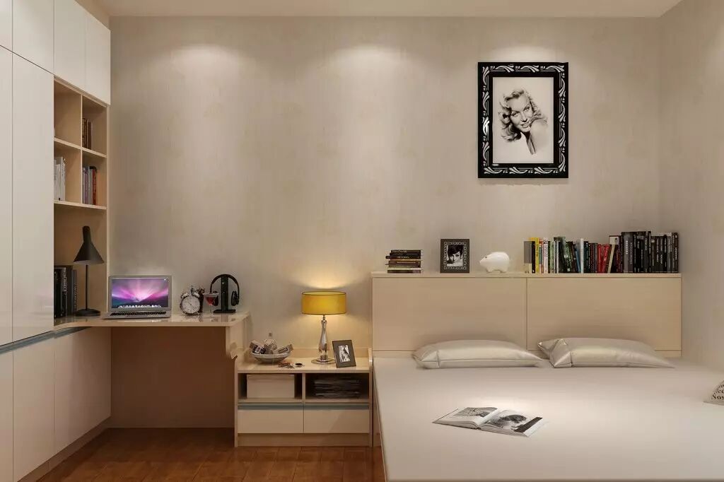 组合家具在卧室是最为适用的,尤其是在小户型中,卧室空间更加有限,想办法想将书桌、衣柜、床头柜组合起来,一件家具顶三件。